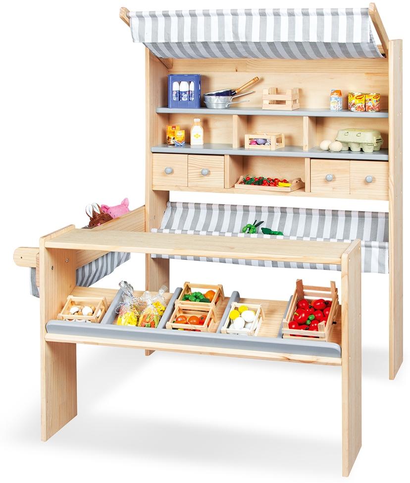 in KauflädenPinolino 'Lucy' Marktstand geeignet für Kinder von 2-8 Jahren, Kiefer / MDF, natur / grau, 107 x 95 x 127 cm