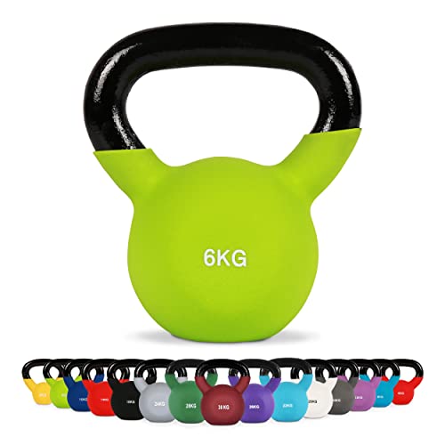 MSPORTS Kettlebell Neopren 2 – 30 kg inkl. Übungsposter (6 Kg - Grün) Kugelhantel