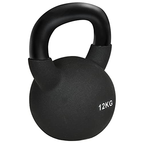 in KettlebellsHOMCOM 12 KG Kettlebell Kugelhantel aus Gusseisen mit Neoprenbeschichtung Bodenschonende Schwunghantel Gewichtkugel für GewichthebenKonditionierung, Kraft- und Kerntraining Schwarz