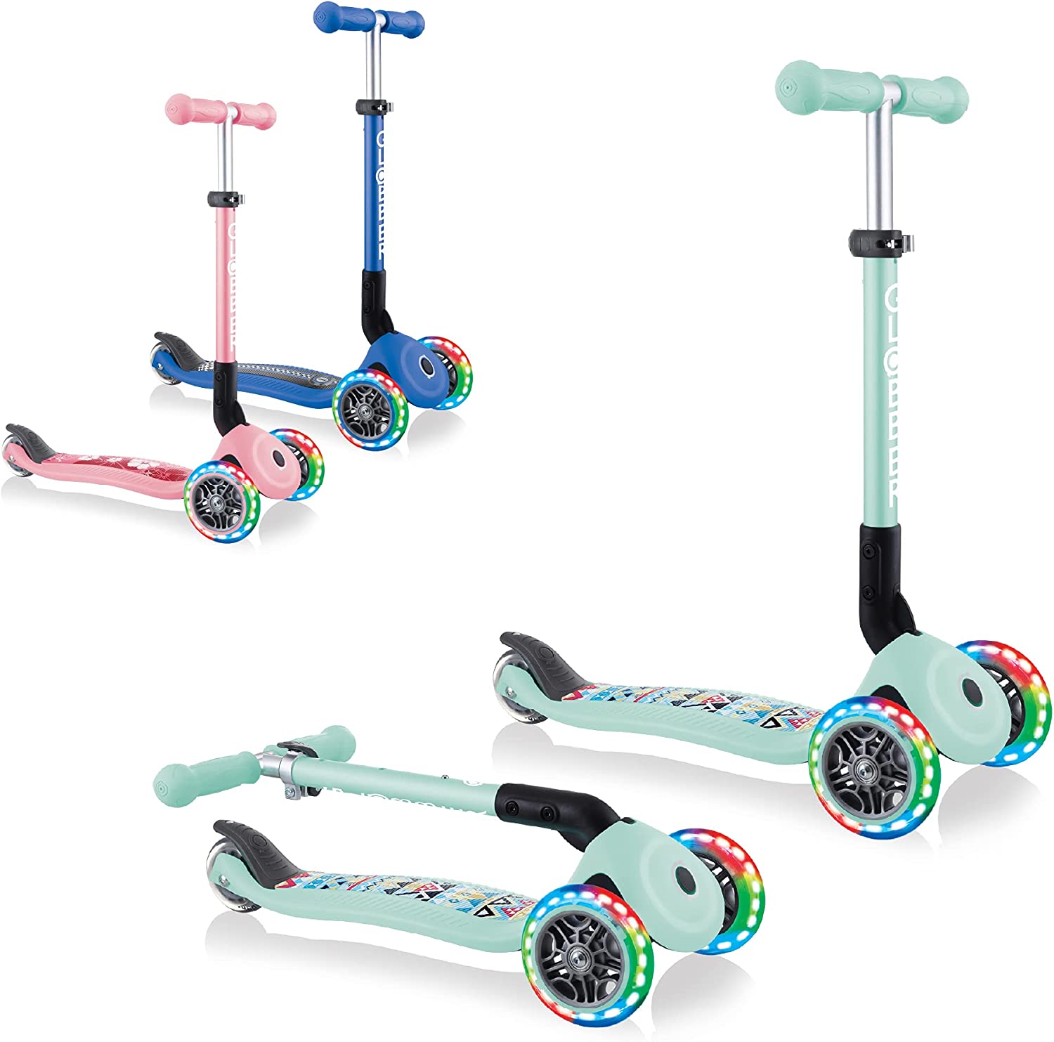 - Der Globber JUNIOR FOLDABLE FANTASY LIGHTS ist ein hochwertiger Kinderscooter mit einem patentierten Klappmechanismus, der den Transport erleichtert.