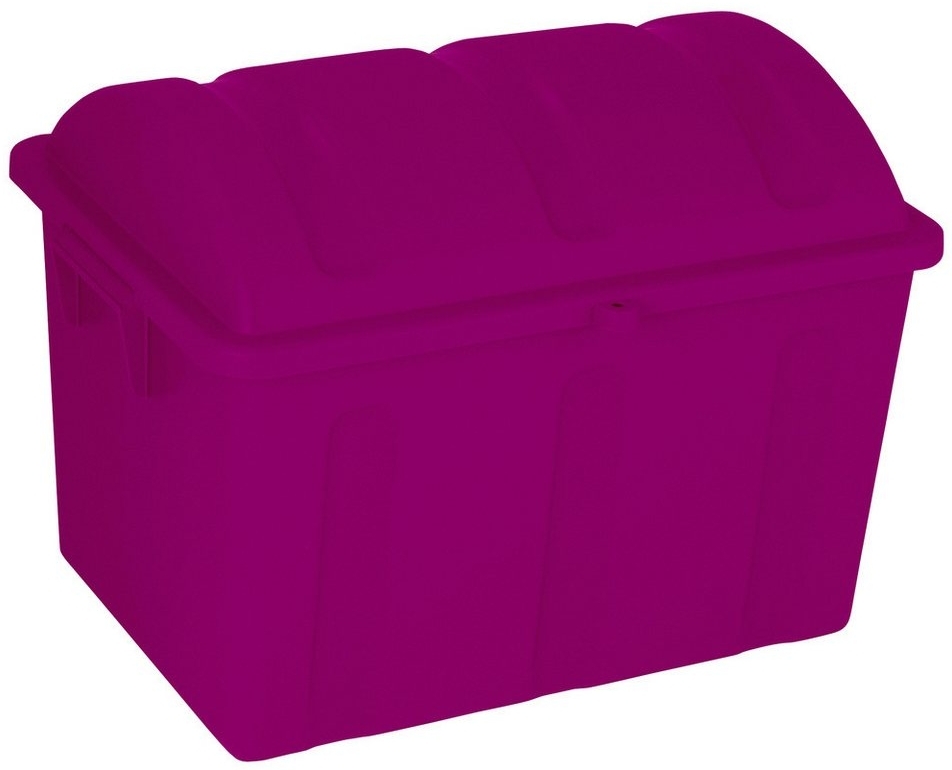 Die Curver Aufbewahrungsbox Piraten 75 Jahre-Edition in Flieder bietet großzügigen Stauraum für Spielzeug und andere Gegenstände. Sie ist ideal für das Kinderzimmer und sorgt dafür, dass alle kostbaren Schätze ordentlich verstaut werden. Mit seitlichen Griffen ausgestattet, lässt sich die Box bequem transportieren. Der Klappverschluss und der gewölbte Deckel gewährleisten eine sichere Aufbewahrung des Inhalts. Eine Öse ermöglicht das Anbringen eines Vorhängeschlosses zum Schutz des Inhalts. **Highlights** - Klappverschluss für einfache Handhabung - Gewölbter Deckel für zusätzlichen Stauraum - Seitliche Griffe für bequemen Transport - Öse für Vorhängeschloss zur Sicherung des Inhalts **Produkteigenschaften** - Farbe: Flieder - Maße: 75 Jahre-Edition