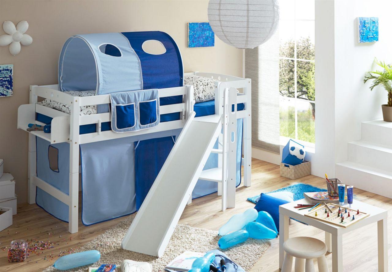 | Name | Hochbett mit Rutsche "Tino" 90x200 Buche massiv weiß |