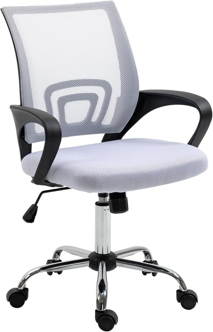 Der SVITA Schreibtischstuhl CYDNEY kombiniert Funktionalität mit modernem Design. Er ist stufenlos höhenverstellbar und 360° drehbar, was ihn ideal für verschiedene Einsatzbereiche macht. Die großzügig gepolsterte Sitzfläche und die Rückenstütze bieten hohen Komfort. Mit einem Gewicht von 8,50 kg und einem stabilen 5-Stern-Gestell ist er sowohl für Laminat- als auch für Teppichböden geeignet. **Highlights** - Stufenlos höhenverstellbar für individuelle Anpassung - 360° drehbar für optimale Bewegungsfreiheit - Mit Rückenstütze für zusätzlichen Komfort - Armlehnen und bodenschonende Kunststoffrollen - Pflegeleichtes und strapazierfähiges Material **Produkteigenschaften** - Gewicht: 8,50 kg - Sitzbreite: 49,00 cm - Sitztiefe: 48,00 cm - Sitzhöhe maximal: 59,00 cm - Sitzhöhe minimal: 48,00 cm - Breite Rückenlehne: 42,00 cm - Höhe Rückenlehne: 48,00 cm - Breite Armlehnen: 4,50 cm - Höhe Armlehnen: 5,50 cm - Material Bezug: Polyester - Material Fußkreuz: verchromtes Metall - Farbe: Weiß - Farbe Armlehnen: Schwarz - Farbe Fußkreuz: Silber - Design: Modern **Lieferumfang** - 1x CYDNEY Kinderstuhl - 1x Aufbauanleitung - Zerlegt in einem Paket geliefert - Einfache Selbstmontage