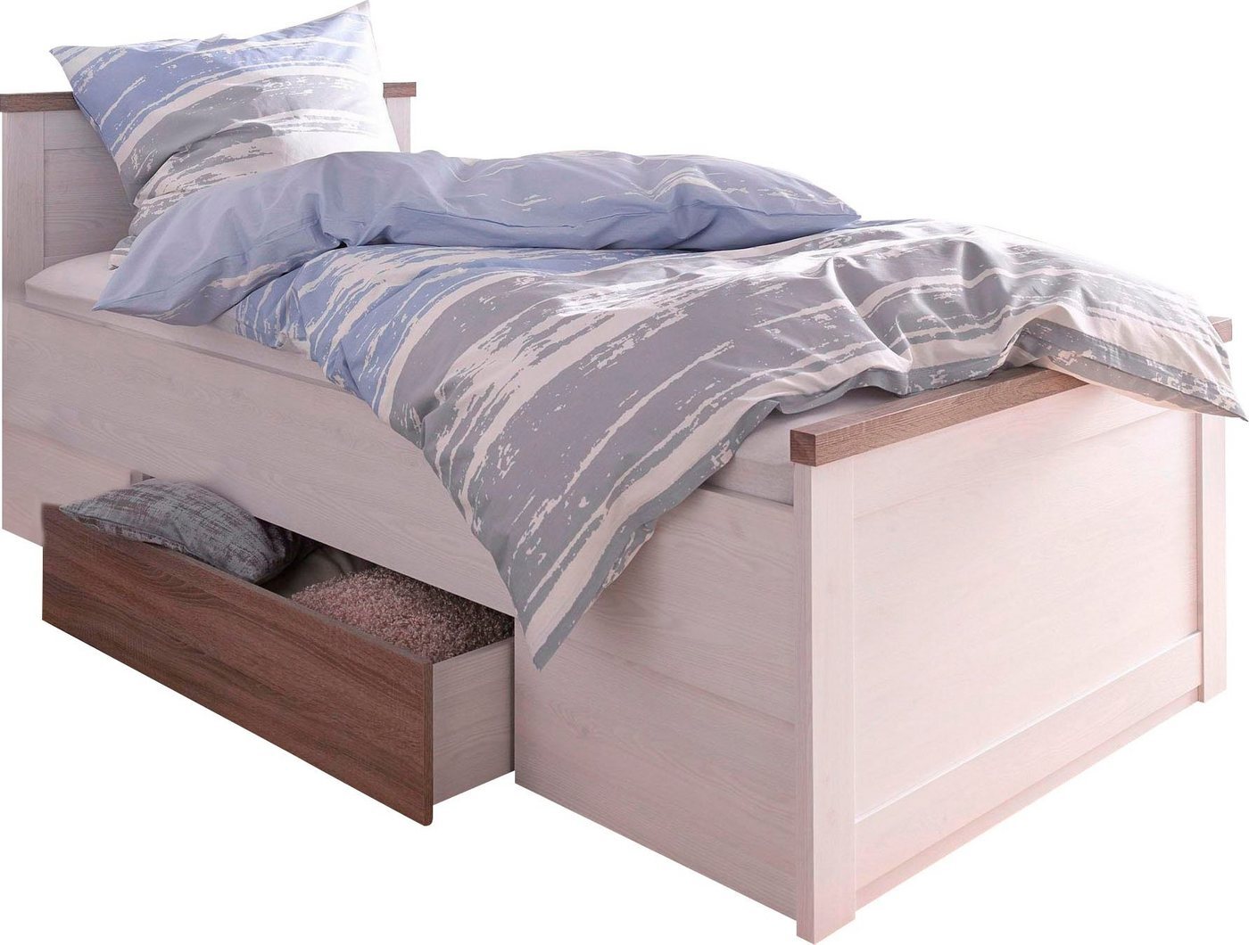 - Material: Holznachbildung - Produktdetails: Bett - Liegefläche 100x200 cm - inklusive 1 Bettschubkasten - Bettseitenhöhe: 49 cm - Abmessungen: 106x91-59x205 cm (BxHxT)