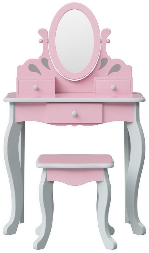 | Beschreibung | Der „Princess Rapunzel“ Holz-Frisiertisch für Kinder verfügt über einen drehbaren ovalen Spiegel im Vintage-Stil, gefertigt aus bruchsicherem Acryl und eingefasst in einem verschnörkelten Rahmen. Der Schminktisch und der dazugehörige Hocker sind in einem klassischen Rosa mit grauen Akzenten gehalten und passen perfekt in jedes Kinder- oder Spielzimmer. Drei Schubladen bieten Platz für Haar-Accessoires, Schmuck und kleine Schätze. |