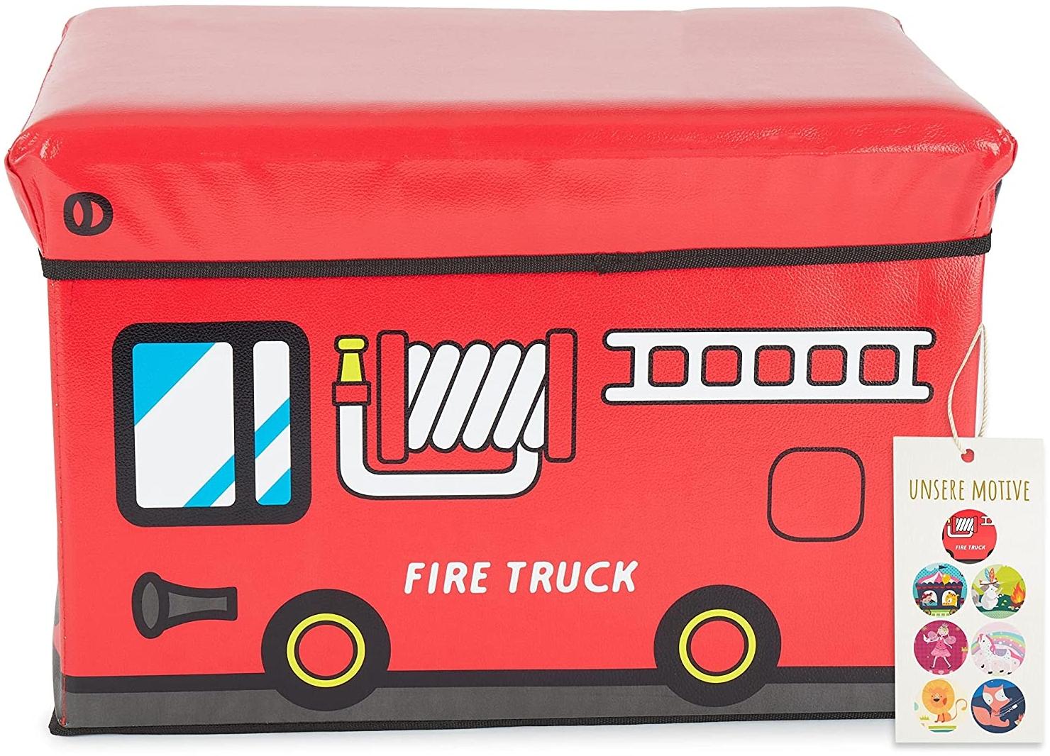 Name Große Spielzeug- und Staubox sowie Sitzbank fürs Kinderzimmer, Feuerwehr, 60 x 30 x 35 cm, von Bieco