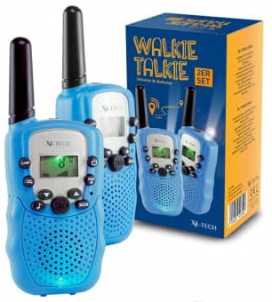 Walkie Talkie 2er Set Walkie Talkie in allen Lebenslagen: Das Walkie-Talkie-2er Set macht Spaß bei Freizeitaktivitäten aller Art. Insbesondere Kindern können durch die einfache Bedienung die Grundlagen der Kommunikationstechnik vermittelt werden. Mit diesen Geräten machen Fahrradausflüge gleich doppelt so viel Spaß, und beim Zelten oder im Freizeitpark bleibt man ständig in Kontakt. Mit der VOX-Funktion können die Walkie Talkies kinderleicht als Babyphone umfunktioniert werden. Durch die ergonomische, quadratische Form mit einer kleinen Antenne fühlt sich jedes Kind wie ein Agent auf einer Geheimmission. Um miteinander kommunizieren zu können, müssen beide auf demselben Kanal eingestellt werden. Insgesamt besitzt das Gerät acht Kanäle, welche man durch die beiden Pfeiltasten einstellen kann. Des Weiteren sind sogar Subkanäle möglich. Durch die Taste TALK kann man nun miteinander telefonieren. Die Reichweite beträgt bis zu 3 km. Das Walkie-Talkie besitzt darüber hinaus zehn unterschiedliche Klingeltöne, eine Scan-Funktion und eine Taschenlampe. Zusätzlich sind die Kinder in der Lage miteinander Nachrichten auszutauschen. Es ist möglich mit mehreren Geräten der X4-TECH Walkie Talkie Serie zu kommunizieren unabhängig welches Farb-Set erworben wurde. Allgemein ist dieses Gerät sehr robust, hat einen klaren Ton, ein hübsches Design. Die Walkie Talkies benötigen 4x AAA Batterie pro Gerät. Es gibt acht Hauptkanäle und 99 Subkanäle. Das Gerät verfügt über einen privaten, mobilen Radioempfänger unter der Frequenz 400 bis 470 M Hz. Kreativität und Spaß sind vorprogrammiert und jedes Kind freut sich riesig über so ein Geschenk! Weitere Informationen zum Walkie Talkie: Lieferumfang: 1 x Walkie Talkie Set Inhalt: 2 Walkie Talkie inkl. Batterien Bedienungsanleitung Farbe: Blau Kommunikation über Funk auf kurze Distanz (3km offenes Feld) VOX-Funktion (Babyphone) Taschenlampe Maße: ca. 8 x 6 x 15 cm (L x B x H) Batterien: 8x AAA (4x AAA pro Walkie Talkie) enthalten Altersempfehlung: ab 3 Jahren Hersteller-Artikelnr. : 701953 Achtung! Nicht geeignet für Kinder unter 3 Jahren. Erstickungsgefahr durch abbrechbare, verschluckbare Kleinteile.