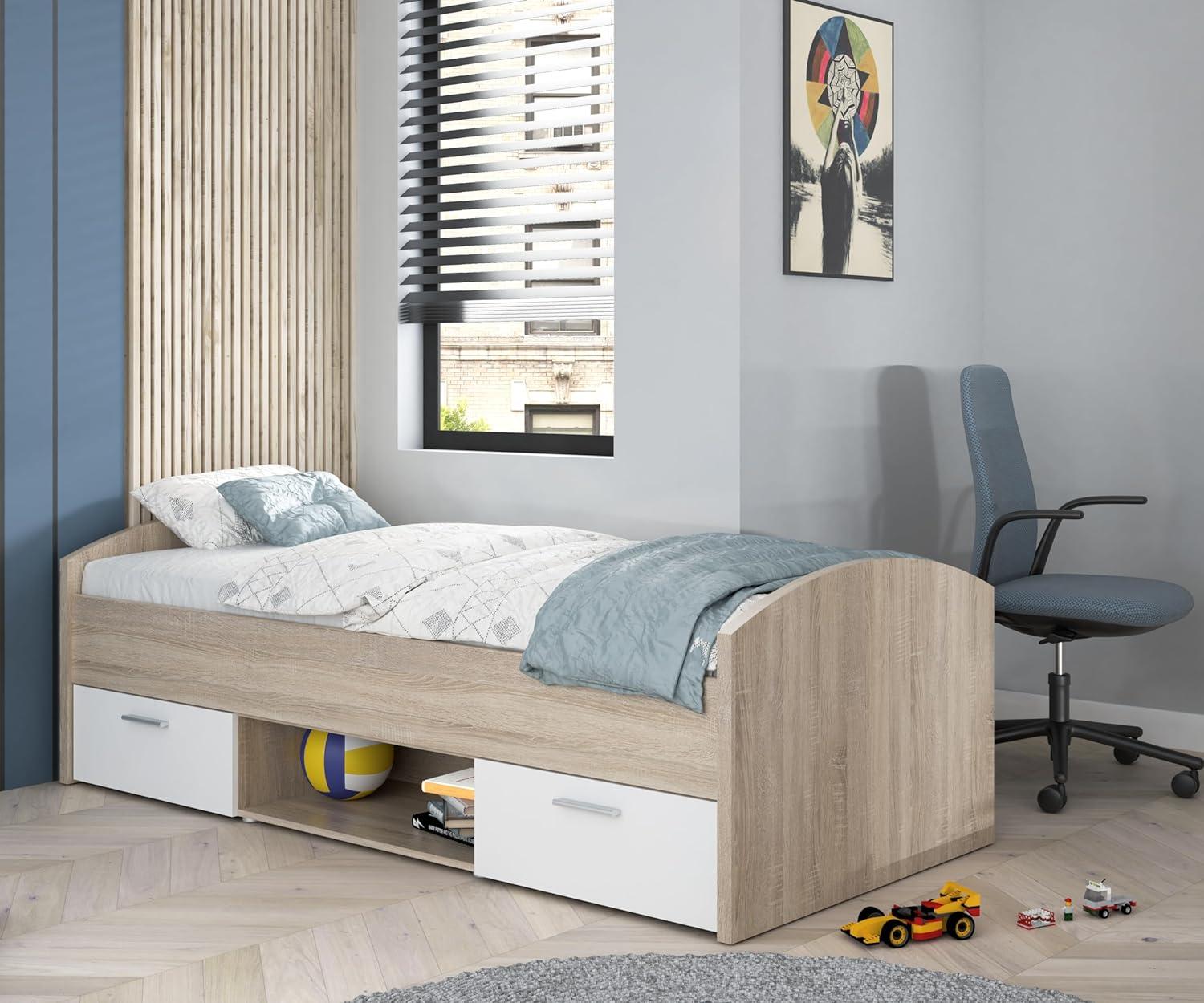 FORTE 'Winnie' Jugendbett sonoma eiche/weiß90x200 cm, inkl. 2 Schubladen