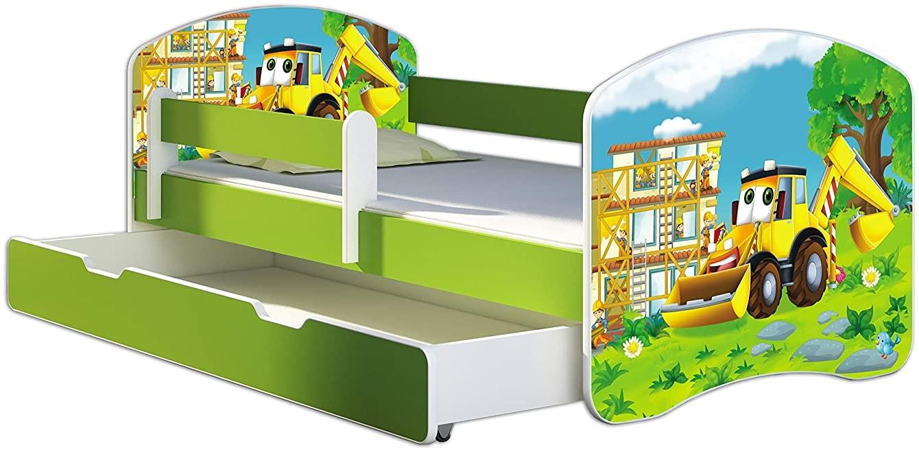 in KindereinzelbettenACMA Kinderbett Jugendbett mit Einer Schublade und Matratze Grün mit Rausfallschutz Lattenrost II 140x70 160x80 180x80 (20 Bagger, 140x70 + Bettkasten)