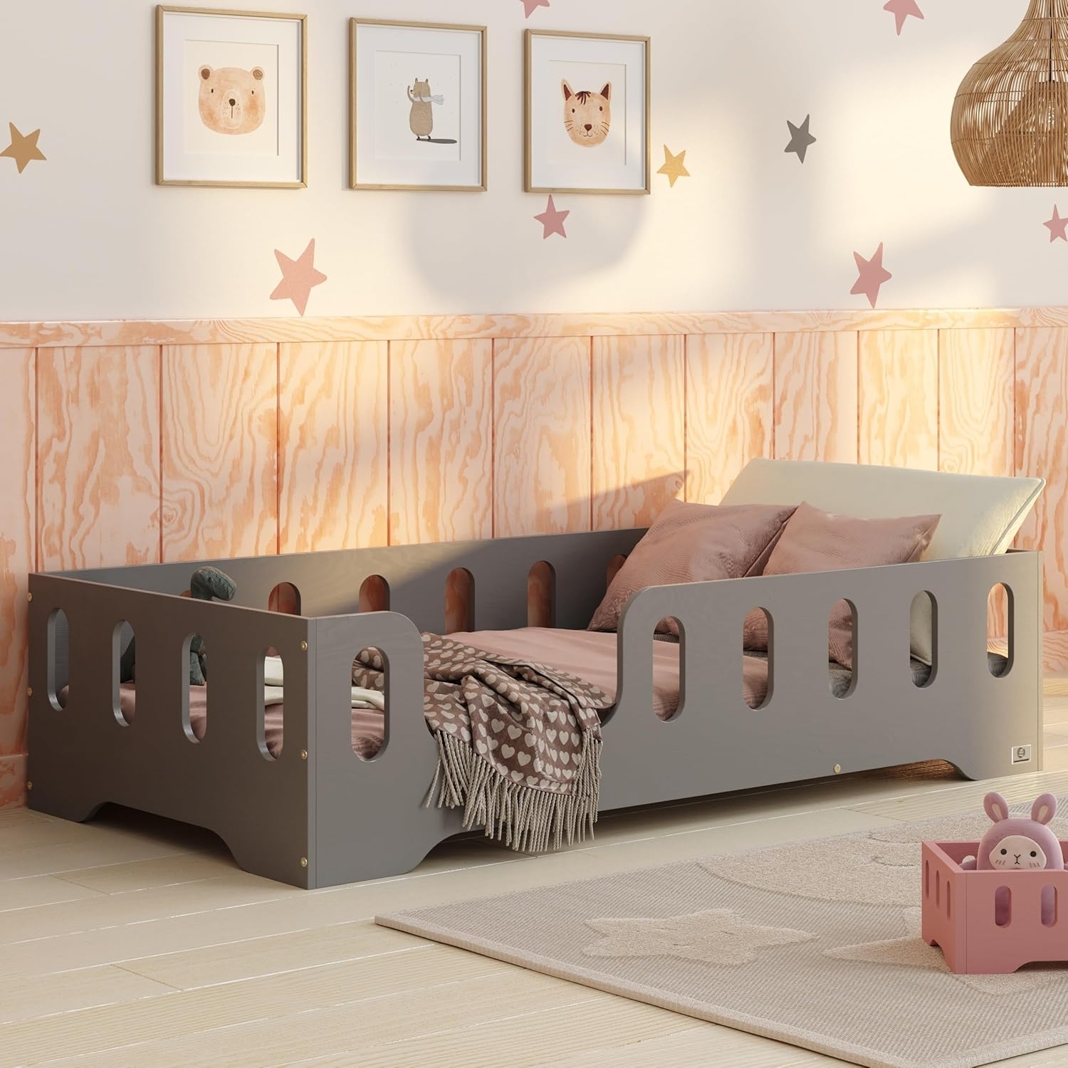 in Kindereinzelbettensmartwood Kinderbett Bodenbett 80x160 mit Rausfallschutz & Lattenrost - Grau - Kinder Montessori Bett TILA 2L mit glatten Kanten - Betten für schnelle Montage - Bis 230 kg belastbar