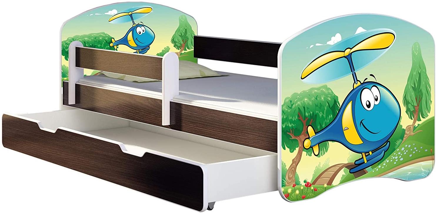 in KindereinzelbettenACMA Kinderbett Jugendbett mit Einer Schublade und Matratze Wenge mit Rausfallschutz Lattenrost II 140x70 160x80 180x80 (35 Hubschrauber, 160x80 + Bettkasten)