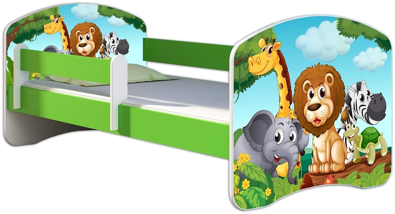 | Name | ACMA Kinderbett Jugendbett mit Einer Schublade und Matratze Grün mit Rausfallschutz Lattenrost II 140x70 160x80 180x80 (02 Animals, 140x70) |