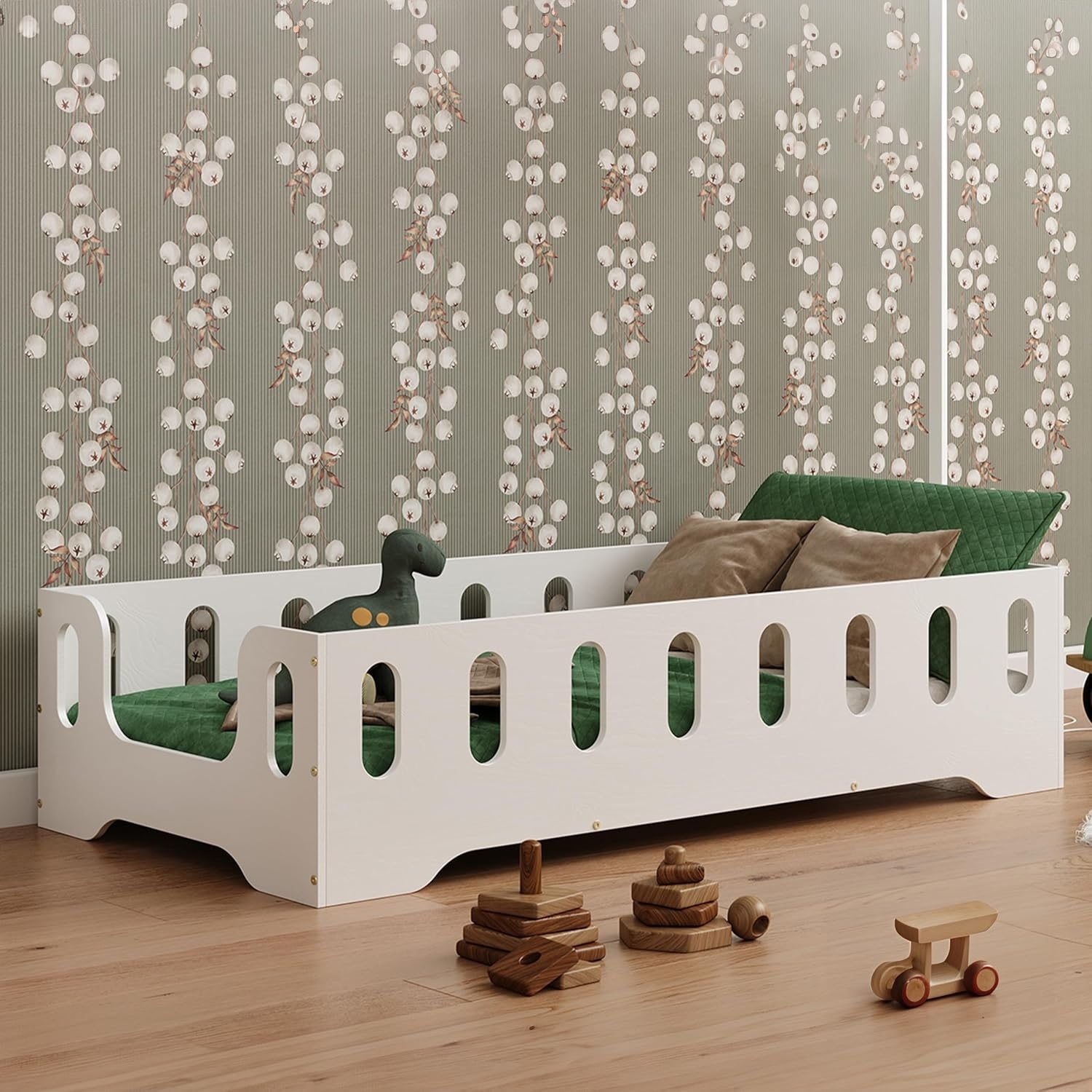 Genießen Sie ruhige Nächte - Glatte, abgerundete Kanten gewährleisten Sicherheit und Komfort, während erweiterte Ränder Ihr Kind vor dem Herausfallen schützen. Dank unseres Bett für Mädchen und Jungen können Sie und Ihr Kind ruhig schlafen Wählen Sie Nachhaltigkeit - Unser Bett für Kinder ist aus 15 mm dickem Kiefer-Sperrholz. Das Holz stammt aus FSC-zertifizierten Wäldern. Mit der Wahl unseres ökologischen Kinderbettes tragen Sie aktiv zum Umweltschutz bei Fördere die Selbstständigkeit - Die Konstruktion von Kleinkind Bett, inspiriert durch die Montessori-Methode, ermöglicht es Kindern, selbstständig aufzustehen und sich hinzulegen, was ihre Unabhängigkeit und Selbstsicherheit fördert Sicherheit für Ihr Kind - Durch das Schleifen und Bürsten des Materials ist die Oberfläche der Kinderbetten glatt und angenehm zu berühren. Die verwendete Farbe ist frei von Reizstoffen und Allergenen. Setzen Sie auf bewährte Sicherheit für Ihr Kind Kinderleichter Aufbau - Der Aufbau ist dank klarer Anleitungen schnell und einfach, spart den Eltern Zeit und Mühe und sorgt für eine stressfreie Installation. Im Set ist keine Matratze enthalten, sodass Sie diese nach Ihren Vorlieben wählen können