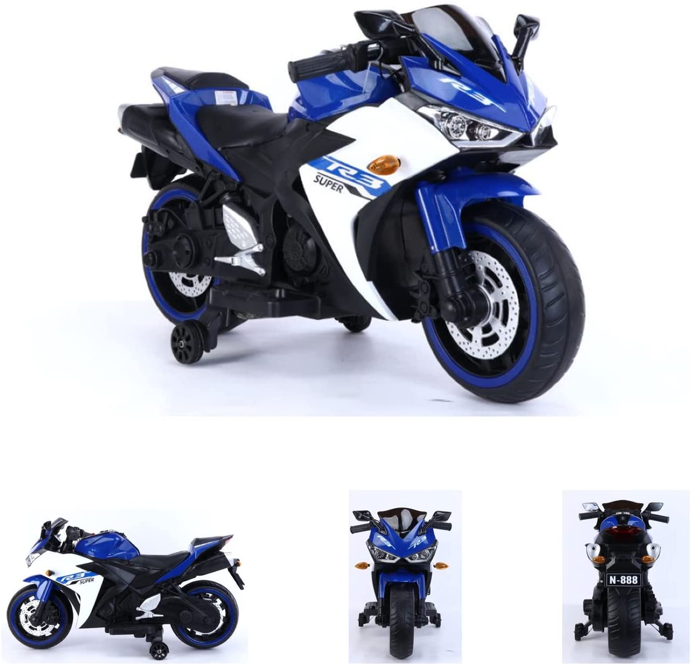 | Name | ES-Toys Kinder Elektromotorrad 888 Musikfunktion, Stützräder, LED-Scheinwerfer blau |
