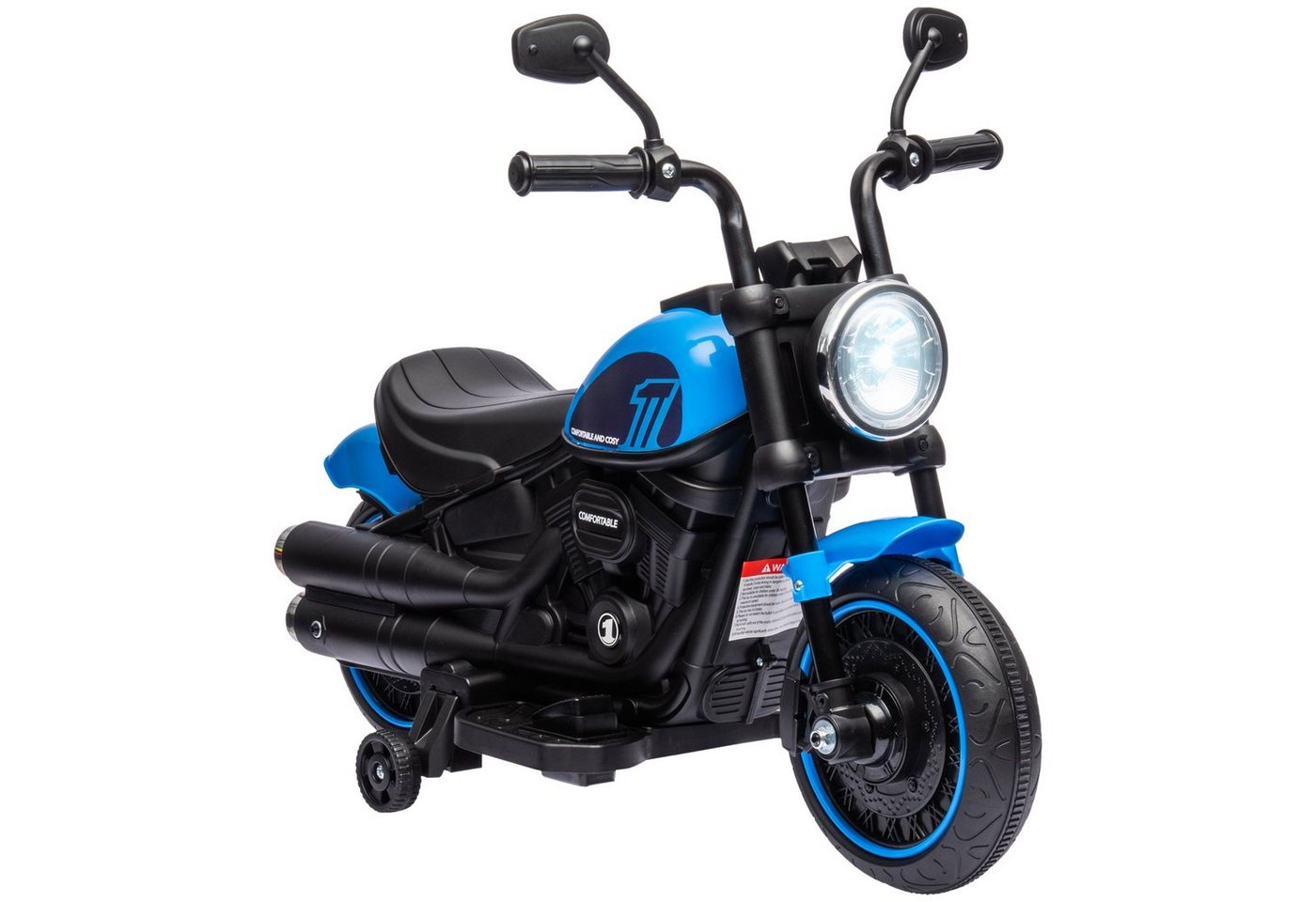 HOMCOM Elektro-Kindermotorrad Kinderfahrzeug mit 2 abnehmbaren Stützrädern BlauBelastbarkeit 25 kg, 76L x 42B x 57H cm