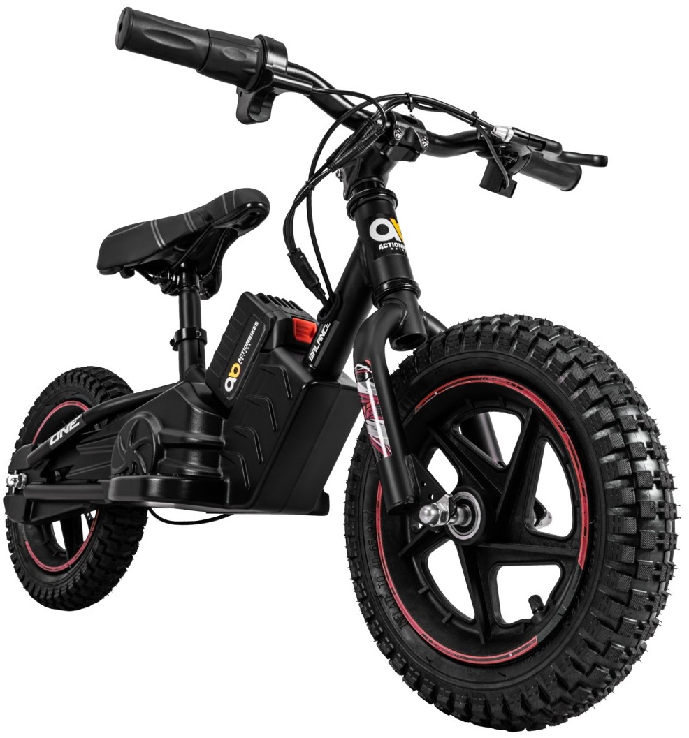 12-Zoll-Elektro-Laufrad Spielerisch zu mehr Gleichgewicht. Bevor das erste Kinderfahrrad einzieht, startet der Nachwuchs seine ersten Fahrversuche meist auf einem Laufrad. Mit dem 12-Zoll-Elektro-Laufrad von Actionbikes kommt frischer Wind in die Ära der Zweiräder! Der Elektromotor mit einer Maximalleistung von 250 Watt unterstützt die kleinen Biker bei ihren Touren. Neben der Bewegung an der frischen Luft bietet ein E-Laufrad einen großen Mehrwert in der Entwicklung der Kinder. Spielerisch üben sie die Balance zu halten und verbessern ihren Gleichgewichtssinn. Motorische und koordinative Fähigkeiten wachsen stetig. All das bei ultimativem Fahrspaß! Auf dem bequemen Sitz des 12-Zoll-Elektro-Laufrads finden Sprösslinge im Alter von 3-5 Jahren bequem Platz. Mit gleich drei Geschwindigkeitsstufen steigern Kids ihr Können stetig, bevor das Laufrad vom ersten Fahrrad abgelöst wird. Elektromobilität für die Kleinsten Originelles Laufrad mit 12 Zoll. Dieses 12-Zoll-Elektro-Laufrad von Actionbikes hat die ideale Größe für Kids im Alter von 3-5 Jahren. Ein Highlight des Kinder-Balance-Bikes ist der ergonomische Schaumstoffsitz. Bequemer als bei vielen anderen Laufrädern macht darauf das Umhersausen noch mehr Spaß. Und die Kleinen genießen jede Ausfahrt. Denn auf einem bequemen Laufrad gelingt es noch leichter, die Balance zu halten! Endlich nicht mehr mit den Schuhen bremsen! Dank effektiver Scheibenbremsen. Die meisten Eltern werden es nur zu gut kennen: Kaum düst der Sprössling mit Rutschauto oder Laufrad über den Hof, zieren Löcher ein Schuh-Paar nach dem anderen. Denn wie wird gebremst? Natürlich mit den Füßen! Nicht so bei diesem 12-Zoll-Elektro-Laufrad: Dank leistungsstarker Scheibenbremsen hat die altbewährte Fußbremse ausgedient. Selbst bei geringem Zug des Bremshebels kommt das Elektro-Laufrad umgehend zum Stehen. Ein positiver Nebeneffekt: So sind Kids optimal auf das kommende Radfahren vorbereitet! Top modernes Design, bewährte Qualität Stylisches E-Laufrad mit Stahl-Rahmen. Altmodische Laufräder gehören der Vergangenheit an! Mit dem 12-Zoll-Elektro-Laufrad zieht ein moderner Flitzer in den heimischen Fuhrpark ein. In mattem Schwarz mit gelungenen farbigen Akzenten in wahlweise Gelb, Rot oder Blau macht dieses Kinder-Laufrad einiges her. Und hält in Sachen Design definitiv mit den Rädern der Großen mit! Aber Optik ist nicht alles: Das Elektro-Laufrad besticht zusätzlich mit hochfestem Stahl. Dieses beeindruckend wertige Material ist deutlich widerstandsfähiger als das vergleichbarer Rahmen. Von Schrittgeschwindigkeit bis Racing-Tempo Drei Geschwindigkeitsstufen von 5-14 km/h. Mit dem Laufrad im Hof Runde für Runde drehen: Das sorgt für eine Menge Spaß! Die drei Geschwindigkeitsstufen des elektrischen Laufrads bringen jetzt noch mehr Pep ins nachmittägliche Bewegungsprogramm. Einfach den Stufenschalter links am Lenker umlegen und schon ändert sich die Maximalgeschwindigkeit. Anfänger beginnen am besten mit bis zu 5 km/h in Stufe eins. Das klappt gut? Dann sausen die kleinen Radler in Stufe zwei mit bis zu 9 km/h durch die Einfahrt. Fortgeschrittene steigern die Geschwindigkeit des Elektro-Laufrads in der dritten Stufe sogar auf bis zu 14 km/h. Kleiner Akku - große Power Lithium-Ionen-Akku für bis zu 40 Minuten Fahrspaß. Dieses Elektro-Laufrad von Actionbikes beweist: Auch an einem Laufrad mit 12 Zoll ist Platz für einen beeindruckend leistungsstarken Akkumulator! In nur 4-5 Stunden ist der Lithium-Ionen-Akku mit 21 Volt wieder vollgeladen. Schon steht einer 40-minütigen Tour nichts im Wege. Damit der Fahrspaß nicht jäh unterbrochen wird, haben Sie die Kapazität am Lenker immer im Blick. Besonders praktisch: Zum Aufladen entfernen Sie den nur 1 kg schweren Akku ganz einfach vom E-Laufrad und laden ihn mithilfe des Ladegeräts an jeder beliebigen Steckdose wieder auf. Offroad mit dem Laufrad unterwegs? Profilreifen für die ideale Bodenhaftung. Quer durch die Pfütze oder rasant durch den Matsch: Während Eltern schon über die schmutzige Hose in der Waschmaschine nachdenken, haben Kids einen Riesenspaß! Gut, dass das Kinder-Balance-Bike mit speziellen Profilreifen ausgestattet ist. Diese liefern besten Grip. Das bedeutet nicht nur grenzenlosen Fahrspaß, sondern auch die größtmögliche Sicherheit auf dem Elektro-Laufrad. Eine Win-Win-Situation für Groß und Klein also! Perfekter Grip - nicht nur auf der Straße Rutschfeste Handgriffe und Fußauflagen. Aber nicht nur auf der Straße ist für festen Halt gesorgt. Rutschfeste Fußauflagen und Handgriffe mit extra Grip helfen den Kindern das Gleichgewicht zu halten. Gerade die ersten Fahrversuche werden damit deutlich leichter. So gelingen zunehmend mehr Meter voller Balance. Sie werden sehen, wie sich der Gleichgewichtssinn stetig verbessert. Das Kinder-Balance-Bike ist ein spaßiges Spielzeug mit Mehrwert! Klein aber oho! Starker Elektromotor mit bis zu 250 Watt. Wie beim E-Bike in Groß ist auch beim kleinen E-Laufrad der Elektromotor das Herzstück des Fahrzeugs. Der bürstenlose Motor beeindruckt mit einer Maximalleistung von bis zu 250 Watt und kaum Wartungsaufwand. Der mittige Antrieb führt zu einem natürlichen Fahrgefühl mit idealem Schwerpunkt. Das erleichtert gerade Anfängern die ersten Fahrversuche. Optimale Voraussetzungen also für eine ausbalancierte Tour mit dem Kinder-Balance-Bike! Weitere Funktionen & Highlights Für maximalen Fahrspaß: Profilreifen, Lithium-Ionen-Akku, Scheibenbremsen, Rutschfeste Fußauflagen. Technische Daten Produkthighlights: Scheibenbremsen hinten, Herausnehmbarer Lithium-Ionen-Akku und 3 Geschwindigkeitsstufen Sicherheit: Scheibenbremsen hinten Montage: Teilmontage Bremsen: Scheibenbremse hinten Abstand der Achsen: 680 mm ± 3 % Elektromotor: Nennleistung: 200 W / 21V, bürstenlos, Max. Leistung: 250 / 21 V Ladedauer: 4 - 5 Stunden Gewicht Akku: 1 kg Rahmenmaterial: hochfester Stahl Akkumulator: Herausnehmbarer Lithium-Ionen-Akku 21 V / 6 Ah G