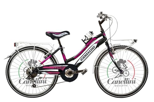 in Kinderfahrräder 10 bis 12 JahreBICICLETTE CANELLINI LINCY Mädchenfahrrad MTB 24 Zoll (61 cm), 6 Gänge, schwarz/pink