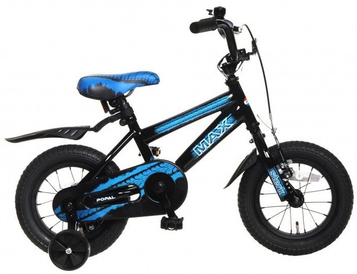 "Popal Max 12"" Jungen Fahrrad ausgestattet mit: Rahmengröße: 22 cm Rahmen: Stahl Farbe: schwarz / blau Radgröße: 12 Zoll Vorderradbremse: V-Bremse Hintere Bremse: Rücktritt Klingel: Ja Kettenschutz: geschlossen Reflektor: Ja, vorne und hinten Stützräder: inklusive Fenders: vorne und hinten Gewicht: 8 kg Pedal to the Max ! An diesem kühlen Fahrrad Sie direkt die bink die Straße. Der sicher eingeschlossen Kettenschutz, Glocke und Reflektoren stellen Sie sicher , max imaal dieses komplettes Fahrrad Jungen genießen können. Und weil Bremsen genauso wichtig wie feine Risse, sicherstellen, daß die Rücktrittbremse und Hand, dass Sie sofort stoppt, wenn er ihn braucht. ""Wer bleibt in meinem Weg?""Popal Max 12"" boys bike equipped with: Frame size: 22 cm Frame: Steel Color: black / blue Wheel size: 12 inches Front brake: V-brake Rear brake: back pedal Bell: yes Chainguard: closed Reflector: Yes, f. "