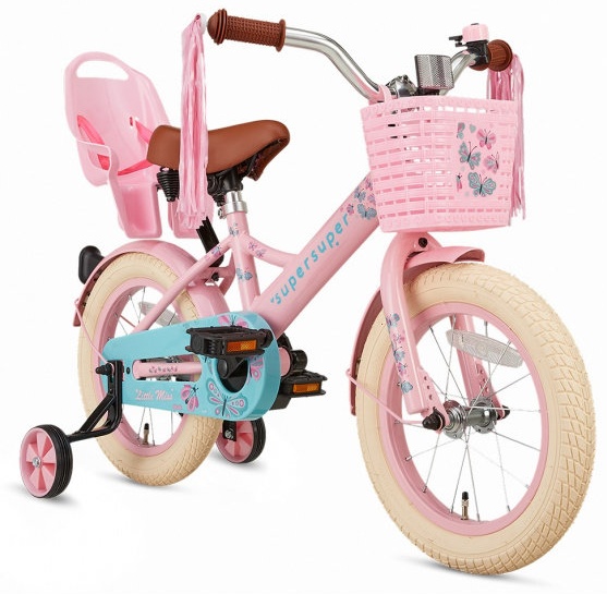| Name | Supersuper Little Miss Kinderfahrrad in Rosa 14 Zoll inkl. Puppensitz, Korb und Stützräder |