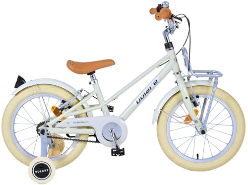 - Das Volare Melody Kinderfahrrad für Mädchen ist in den Größen 16 oder 18 Zoll erhältlich und in einem eleganten Sandfarbton gehalten