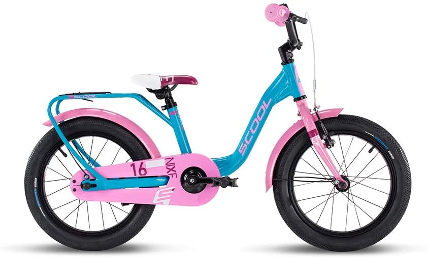 S'Cool Kinderfahrrad ni Xe alloy 16:Mit 16 Zoll Reifen und leichtem Gesamtgewicht von nur 8,3 kg ueberzeugt das Scool Kinderfahrrad Elternd und Kinder gleichermassen. Kinder ab 4 Jahren und einer Koerpergroesse von 107 cm werden dieses Kinderfahrrad lieben und gerne damit fahren. Die Kids koennen leicht aufsteigen und fahren sehr angenehm mit diesem Rad. Es gibt 2 Bremsen: eine Felgenbremse vorne, die ueber den Kinder-Bremshebel bedient wird und eine Ruecktrittbremse, die das Fahrrad bremst, indem du mit den Pedalen rueckwaerts trittst. Ausserdem ist das Kinderrad mit Sicherheits-Elementen (Kettenschutz, Sicherheitslenkergriffe, Klingel) und praktischer Zusatz-Ausstattung (Schutzbleche, Seitenstaender, Gepaecktraeger mit Federklappe) gespickt. Die Details des S Cool 16 Zoll Fahrrades: Kinderfahrrad mit 12 Zoll Reifen Aluminium-Rahmen Gesamtgewicht: 8,3 kg Ganganzahl: 1 Mit Ruecktrittbremse und Handbremse Die Geometrie: Fuer Kinder ab 4 Jahren Fuer Kinder ab 107 cm Koerpergroesse Reifengroesse: 16 Zoll Sattelhoehe: 49-57 cm (verstellbar)
