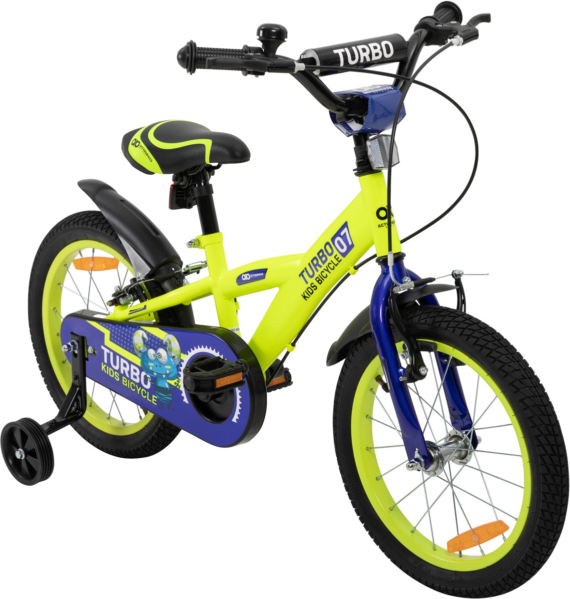 | Name | Kinderfahrrad Turbo 16 Zoll Kinder Fahrrad mit Stützrädern gelb blau ab 4 Jahre |