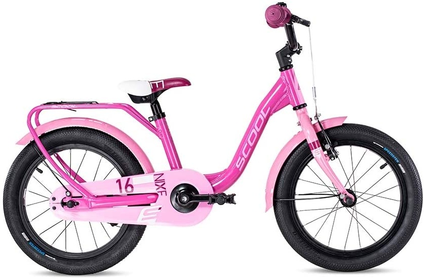S'Cool Kinderfahrrad ni Xe alloy 16:Mit 16 Zoll Reifen und leichtem Gesamtgewicht von nur 8,3 kg ueberzeugt das Scool Kinderfahrrad Elternd und Kinder gleichermassen. Kinder ab 4 Jahren und einer Koerpergroesse von 107 cm werden dieses Kinderfahrrad lieben und gerne damit fahren. Die Kids koennen leicht aufsteigen und fahren sehr angenehm mit diesem Rad. Es gibt 2 Bremsen: eine Felgenbremse vorne, die ueber den Kinder-Bremshebel bedient wird und eine Ruecktrittbremse, die das Fahrrad bremst, indem du mit den Pedalen rueckwaerts trittst. Ausserdem ist das Kinderrad mit Sicherheits-Elementen (Kettenschutz, Sicherheitslenkergriffe, Klingel) und praktischer Zusatz-Ausstattung (Schutzbleche, Seitenstaender, Gepaecktraeger mit Federklappe) gespickt. Die Details des S Cool 16 Zoll Fahrrades: Kinderfahrrad mit 12 Zoll Reifen Aluminium-Rahmen Gesamtgewicht: 8,3 kg Ganganzahl: 1 Mit Ruecktrittbremse und Handbremse Die Geometrie: Fuer Kinder ab 4 Jahren Fuer Kinder ab 107 cm Koerpergroesse Reifengroesse: 16 Zoll Sattelhoehe: 49-57 cm (verstellbar)