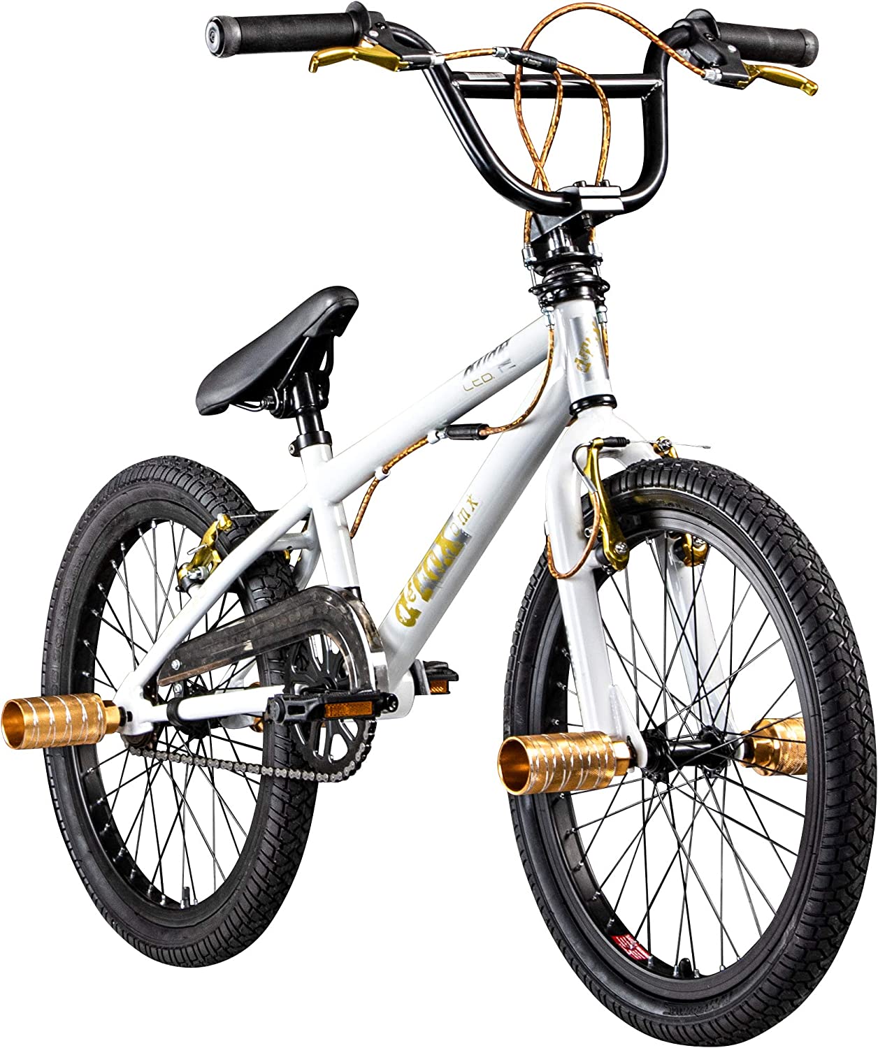 | Name | deTox Rude Limited, 20 Zoll BMX Freestyle Street Park Einsteiger Anfänger ab 140 cm Fahrrad, weiß/gold |
