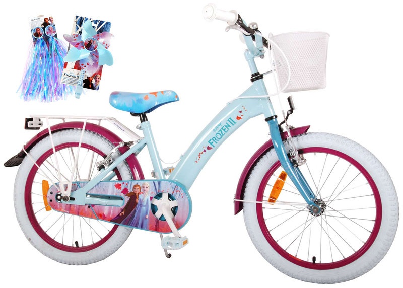 | Name | Kubbinga Disney Frozen II 18 Zoll 2 Felgenbremsen + Extra Windrad und Fransen + Korb + Gepäckträger |