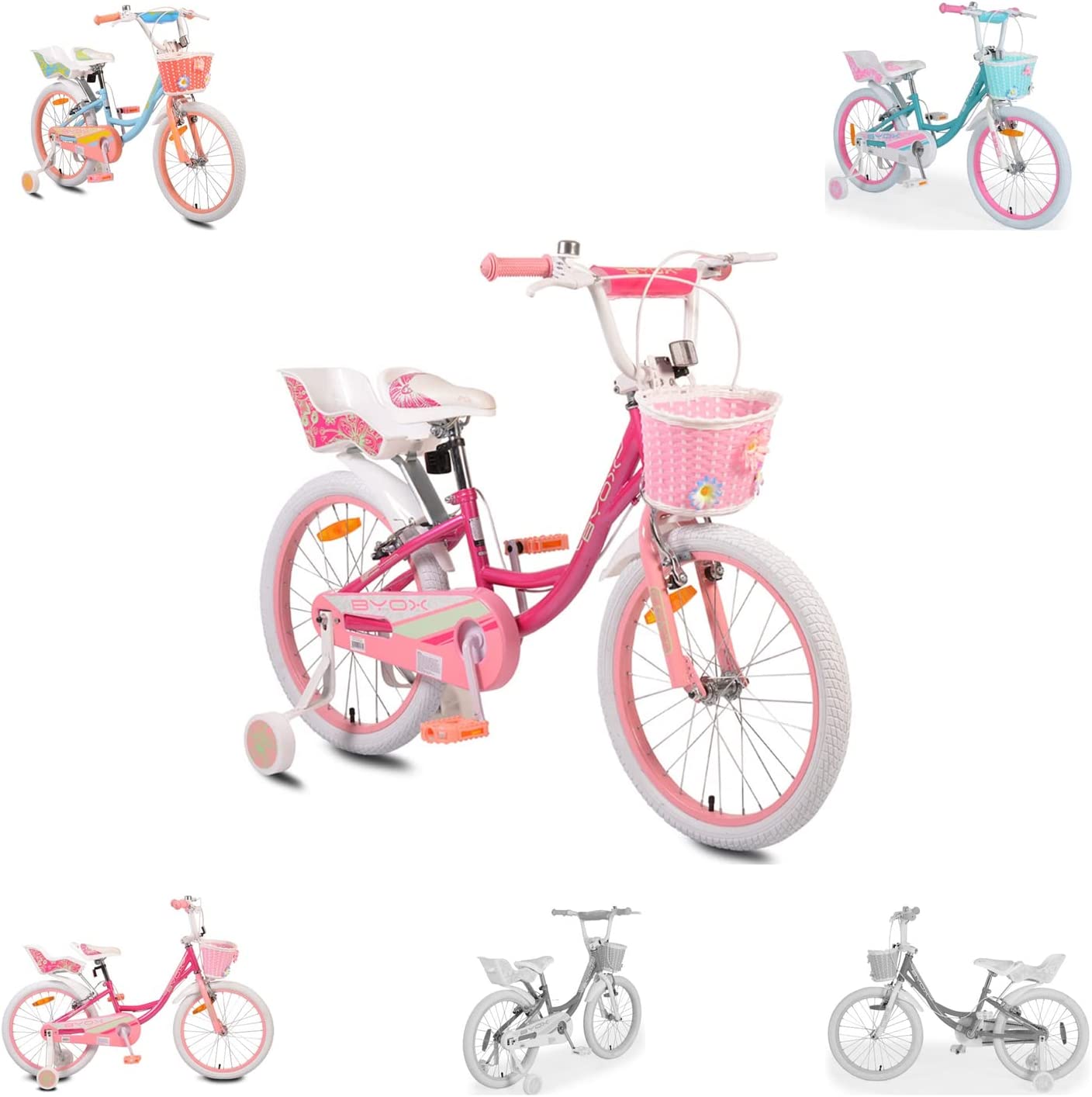 Byox Kinderfahrrad 20 Zoll Fashion GirlStützräder, Korb am Lenker, Puppensitz pink