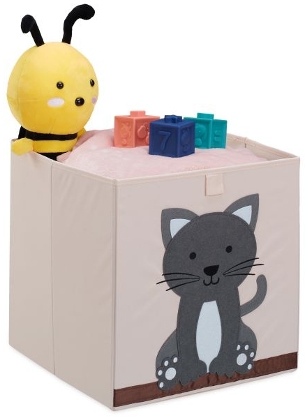 Diese Aufbewahrungsbox mit Katzenmotiv ist der perfekte Ordnungshelfer für das Kinderzimmer. Mit einem Volumen von ca. 34 Litern und den Maßen von ca. 33 x 33 x 33 cm bietet sie ausreichend Platz für Spielzeug, Kuscheltiere oder Kinderkleidung. Die Schlaufe an der Vorderseite erleichtert das Herausziehen aus dem Regal, während die Faltbarkeit der Box eine platzsparende Aufbewahrung ermöglicht. **Highlights** - Niedliches Katzenmotiv als Blickfang im Kinderzimmer - Schlaufe zum einfachen Herausziehen aus Würfelregalen - Faltbare Konstruktion für platzsparende Aufbewahrung - Vielseitig nutzbar für Spielzeug, Kleidung und mehr - Leichtes Gewicht von ca. 900 g **Produkteigenschaften** - Maße (H x B x T): ca. 33 x 33 x 33 cm - Gewicht: ca. 900 g - Volumen: ca. 34 Liter - Material: Vlies, Pappe, Polyester - Farbe: Beige/Grau **Lieferumfang** - 1x Aufbewahrungsbox - Dekoartikel nicht im Lieferumfang enthalten
