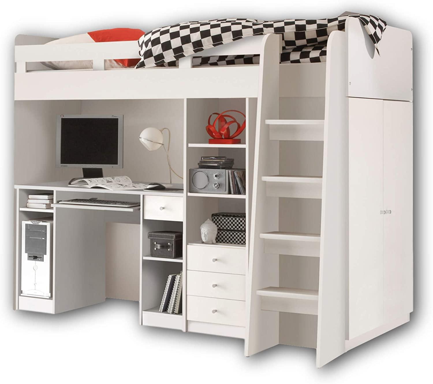 🔥 Deal in KinderfunktionsbettenBega Hochbett Unit 90x200 cm weiß inklusive KleiderschrankRegal und Schreibtisch