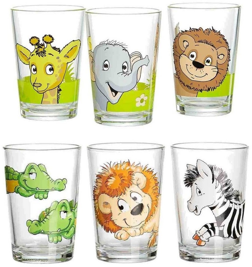 Das 6er Set Dschungeltiere & Happy Zoo von Ritzenhoff & Breker bringt Freude in den Alltag Ihrer Kinder. Mit einem Durchmesser von ca. 7 cm und einer Höhe von ca. 10 cm sind die Becher perfekt für kleine Hände geeignet. Sie haben ein Fassungsvermögen von ca. 205 ml und sind spülmaschinengeeignet, was die Reinigung erleichtert. Die niedlichen Motive animieren Ihre Kinder zum Essen und Trinken. **Highlights** - Niedliche Dschungeltiere & spielfreundige Zootiere - Ideal für den Alltag - Spülmaschinengeeignet **Produkteigenschaften** - Durchmesser: ca. 7 cm - Höhe: ca. 10 cm - Inhalt: ca. 205 ml - Nutzinhalt - Spülmaschinengeeignet **Lieferumfang** - 6x Trinkglas Ritzenhoff & Breker Dschungeltiere & Happy Zoo Kinderglas Set 6-teilig