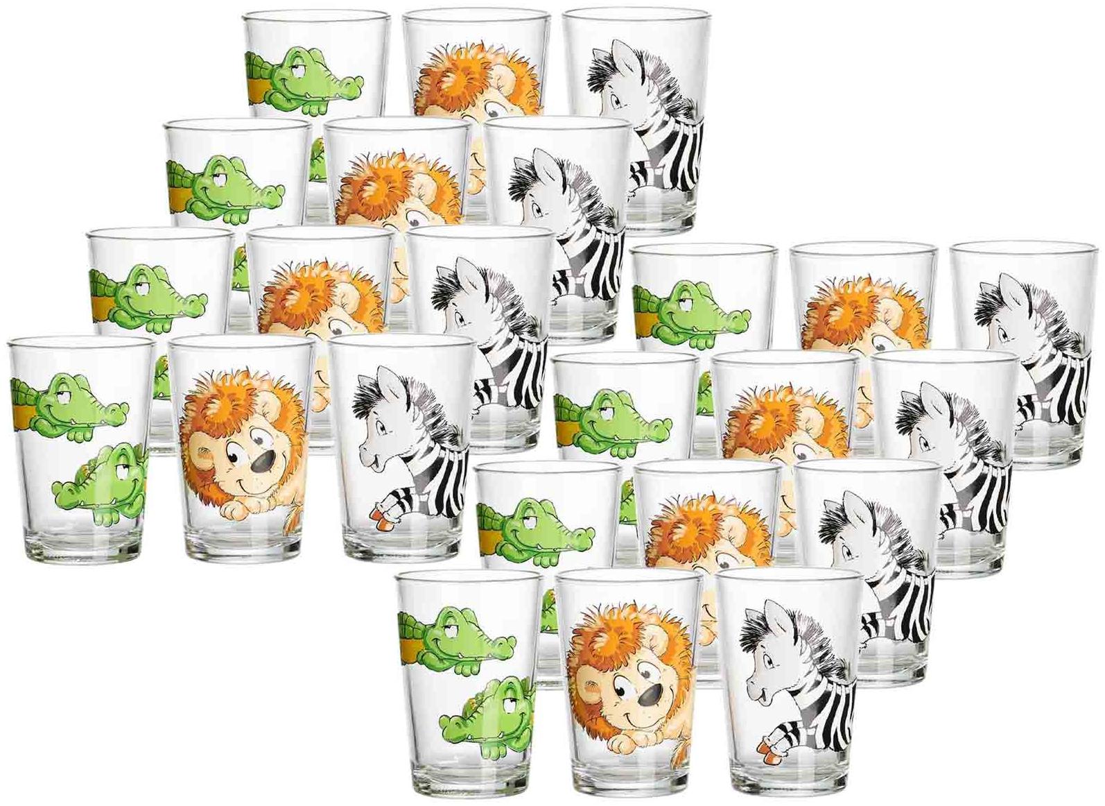 Das 24-teilige Ritzenhoff & Breker HAPPY ZOO Kinderbecher Set zaubert Ihren Kindern ein Lächeln ins Gesicht. Die drolligen Kindertrinkgläser mit den Motiven Krokodil, Zebra und Löwe sorgen bei jedem Frühstück für ein aufregendes Zooerlebnis. Die Becher haben eine Größe von ca. 10,0 x 6,0 x 4,0 cm und fassen ca. 205 ml. Sie sind ideal für den Alltag und können problemlos in der Spülmaschine gereinigt werden. **Highlights** - 24-teiliges Set - Drollige Motive: Krokodil, Zebra, Löwe - Ideal für den Alltag - Spülmaschinengeeignet **Produkteigenschaften** - Maße: ca. 10,0 x 6,0 x 4,0 cm - Inhalt: ca. 205 ml - Nutzinhalt - Motive: Krokodil, Zebra, Löwe **Lieferumfang** - 24x Trinkglas