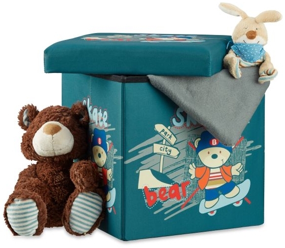 - Der Relaxdays 'Bär' Sitzhocker bietet einen großzügigen Stauraum von ca. 40 Litern, ideal für Spielsachen wie Bälle und Kuscheltiere.