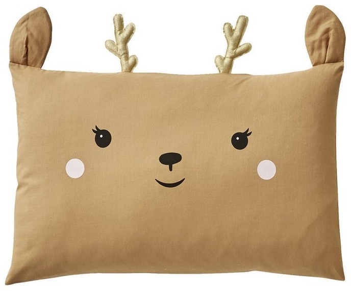 Der Baby Kissenbezug „Grüner Wald“ mit einem charmanten Reh-Motiv ist aus robuster, 100 % Baumwolle gefertigt. Die fest gewebte Qualität sorgt für Langlebigkeit und Farbtreue, selbst nach häufigem Waschen. Mit einem praktischen Hotelverschluss ausgestattet, bietet dieser Kissenbezug nicht nur Sicherheit, sondern auch einen ansprechenden Look für das Kinderzimmer. **Highlights** - Reh-Gesicht mit goldenem Geweih und 3D-Ohren für einen niedlichen Look - Robust und farbecht, auch nach häufigem Waschen - Hotelverschluss für einfaches Beziehen des Kissens - OEKO-TEX® STANDARD 100 zertifiziert für schadstofffreie Materialien - Pflegeleicht bei 30 °C im Feinwaschgang **Produkteigenschaften** - Material: 100 % Baumwolle - Waschtemperatur: 30 °C im Feinwaschgang - Keine Bleichmittel, keine chemische Reinigung - Durchschnittliche Bügeltemperatur - Niedrige Trommeltrocknung - Sicherheitshinweis: Nicht für Kinder unter 18 Monaten geeignet