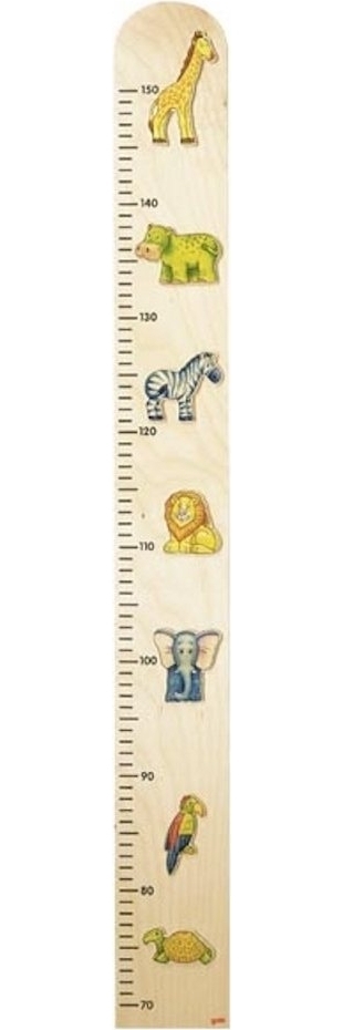Die Goki 'Wilde Tiere' Messlatte ist eine charmante Möglichkeit, das Wachstum Ihres Kindes festzuhalten. Mit einer Länge von 90 cm und liebevollen Tiermotiven wird das Messen der Körpergröße zum aufregenden Erlebnis. Diese Messlatte aus Holz eignet sich nicht nur zum Messen, sondern auch als dekoratives Element an Wänden, Spiegeln oder Schränken. **Highlights** - Länge: 90 cm - Enthält spannende Tiermotive - Aus hochwertigem Holz gefertigt - Dekoartikel, nicht als Spielzeug geeignet - Vielseitig einsetzbar als Wanddekoration **Produkteigenschaften** - Höhe: 90 cm - Material: Holz - Lieferung: per Stück