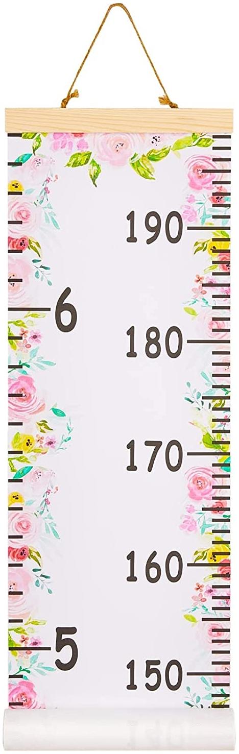 in KindermesslattenBeinou Wachstum Messlatte Dekorative Messlatten für Kinder Aufrollbare Messleiter Lineal Messtabelle für Baby Kinderzimmer Holzrahmen 7. 9'' x 79'' Leinwand Wandbehang Blumen