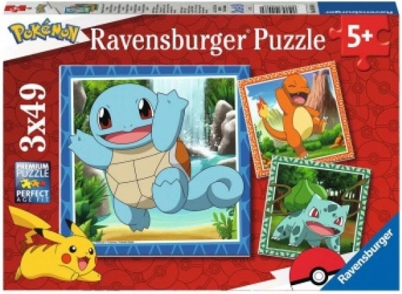 - Die Ravensburger Puzzle 3x49 Teile für Kinder ab 5 Jahren bieten eine Auswahl an beliebten Pokémon-Charakteren wie Glumanda, Bisasam und Schiggy.