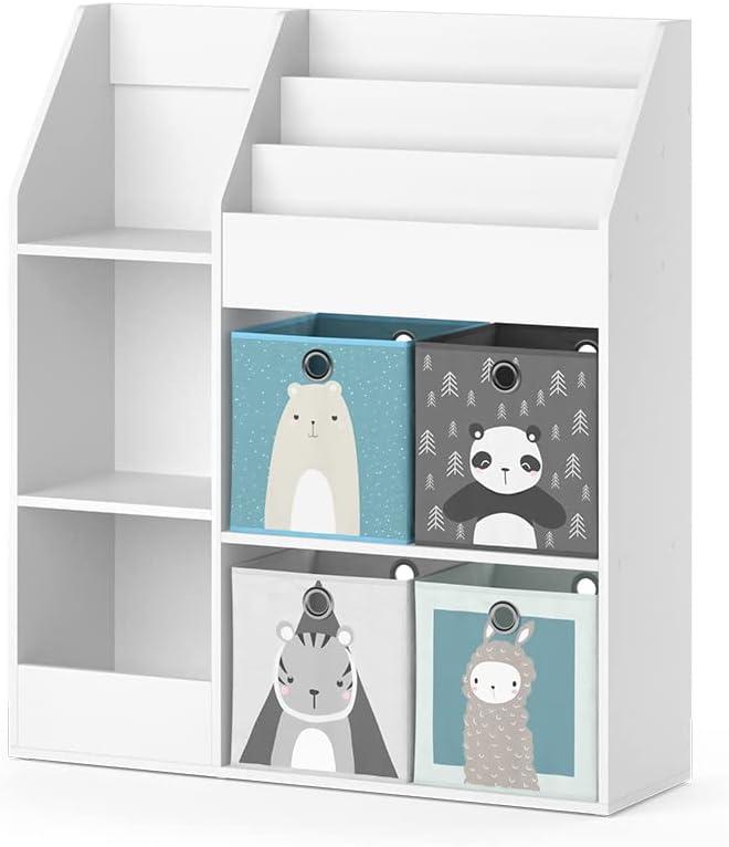 Das Vicco Kinderregal Luigi in Weiß ist die ideale Lösung für die Aufbewahrung von Büchern und Spielzeug im Kinderzimmer. Mit den Abmessungen von 100,4 x 114,2 x 30,9 cm (BxHxT) bietet es ausreichend Platz für die Lieblingsbücher und die mitgelieferten Faltboxen. Diese sind nicht nur praktisch, sondern auch dekorativ und verfügen über zwei unterschiedliche Motive. Das Regal besteht aus pflegeleichter Spanplatte mit Melaminharzbeschichtung und ist einfach aufzubauen. **Highlights** - Inklusive 4 Faltboxen für zusätzlichen Stauraum - Faltboxen mit zwei unterschiedlichen Motiven auf Vorder- und Rückseite - Pflegeleichte Oberfläche durch Melaminharzbeschichtung - Einfache Montage dank bebilderter Anleitung - Stabilität durch starken Karton mit Kunststoffvlies **Produkteigenschaften** - Farbe: Weiß - Abmessungen: 100,4 x 114,2 x 30,9 cm (BxHxT) - Material: Spanplatte, 16 mm - Artikelgewicht: 27,6 kg - Artikelgewicht inkl. Verpackung: 29,6 kg **Lieferumfang** - Kinderregal - 4x Faltbox - Montageanleitung - Montagematerial
