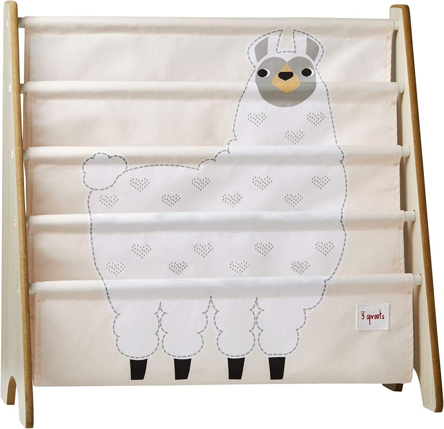 Das 3 Sprouts Bücherregal Lama ist die ideale Aufbewahrungslösung für kleine Bücherwürmer. Mit einer Höhe von 60 cm und vier Fächern bietet es ausreichend Platz für alle Lieblingsbücher. Die Aufbewahrung mit dem Buchdeckel nach vorne ermöglicht es den Kleinsten, den Überblick zu behalten. Das Regal hat eine Länge von 63 cm und eine Tiefe von 26 cm und besteht aus hochwertigen Materialien, darunter 100% Pressspan, 100% Eisen und 100% Polyester. **Highlights** - Praktisches Bücherregal mit vier Fächern - Perfekte Höhe für kleine Bücherwürmer - Aufbewahrung mit Buchdeckel nach vorne für besseren Überblick **Produkteigenschaften** - Maße: Länge: 63 cm, Tiefe: 26 cm, Höhe: 60 cm - Material: Stoff: 100% Polyester, Rahmen: 100% Pressspan, Stangen: 100% Eisen **Lieferumfang** - 1x Bücherregal Lama
