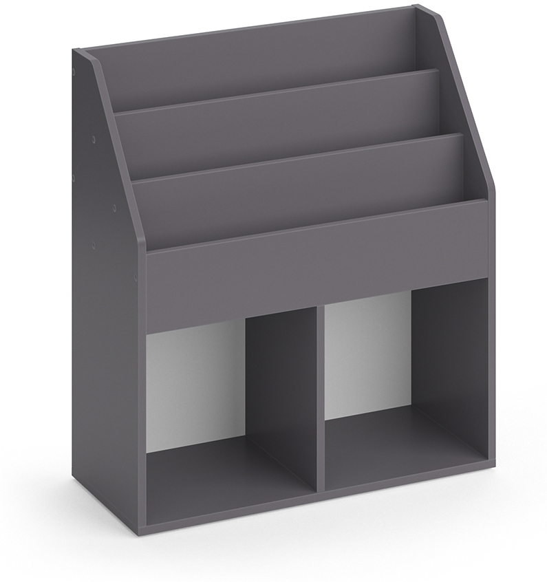 Das Kinderregal Luigi ist das perfekte Möbelstück für jedes Kinderzimmer! Mit seinen drei offenen Ablagen und den zwei Fächern für Boxen bietet es ausreichend Platz für Bücher und Spielzeug. Die Möbelserie Luigi wurde speziell für Kinderzimmer entworfen und lässt sich hervorragend mit anderen Artikeln der Kollektion kombinieren. Dank Luigi wird das Aufräumen zum Kinderspiel! Die bequeme Aufbewahrung von Büchern und Spielzeug wird zum Kinderspiel und schafft Platz für unbeschwerten Spielspaß. Die hochwertige Verarbeitung und das ansprechende Design machen das Kinderregal Luigi zu einem beliebten Möbelstück in jedem Kinderzimmer. Eltern können sich auf die vielfältigen Einsatzmöglichkeiten des Kinderregals Luigi verlassen, denn es bietet nicht nur Platz für Bücher und Spielzeug, sondern verhilft auch zu mehr Ordnung im Kinderzimmer. Das Regal sorgt somit für mehr Freiraum und ein besseres Raumklima. Luigi - das Kinderregal mit Wohlfühlcharakter für kleine Entdecker! --- **Technische Details:** **Farbe:** Grau **Abmessungen:** 30 x 72 x 79 cm (BxHxT) **Material:** Spanplatte, 16 mm **Oberfläche:** Melaminharzbeschichtung **Gewicht brutto:** 21.2 kg **Artikelgewicht inkl. Verpackung:** 19.35 kg. **Artikelgewicht:** 18.36 kg. --- LIEFERUMFANG: Regal für Kinderzimmer, Montageanleitung, Montagematerial .
