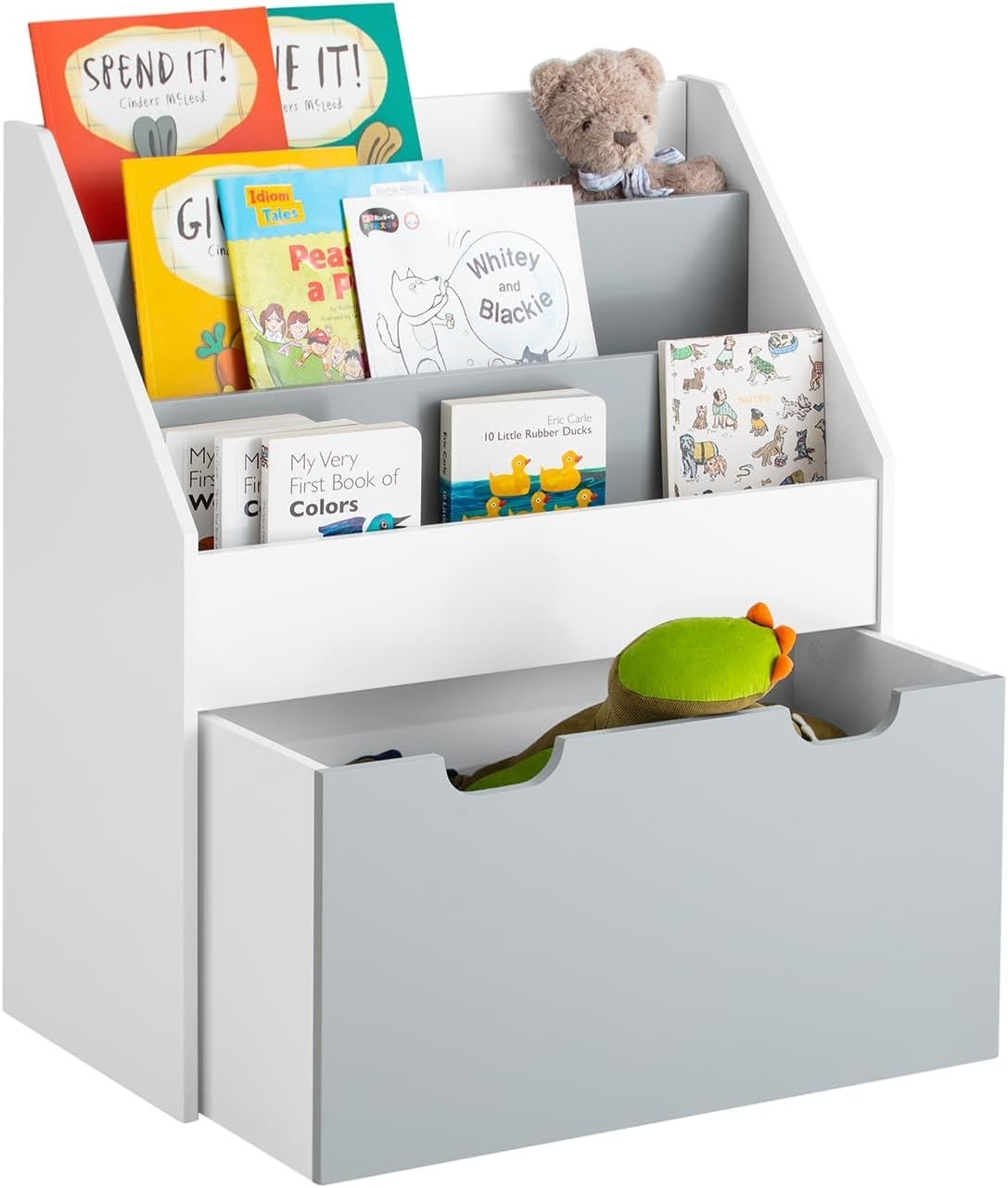 🔥 Deal in Kinderregale: KinderbücherregaleSoBuy KMB17-HG Kinder Bücherregal mit 3 Ablagefächern1 Schublade, Weiß/Grau