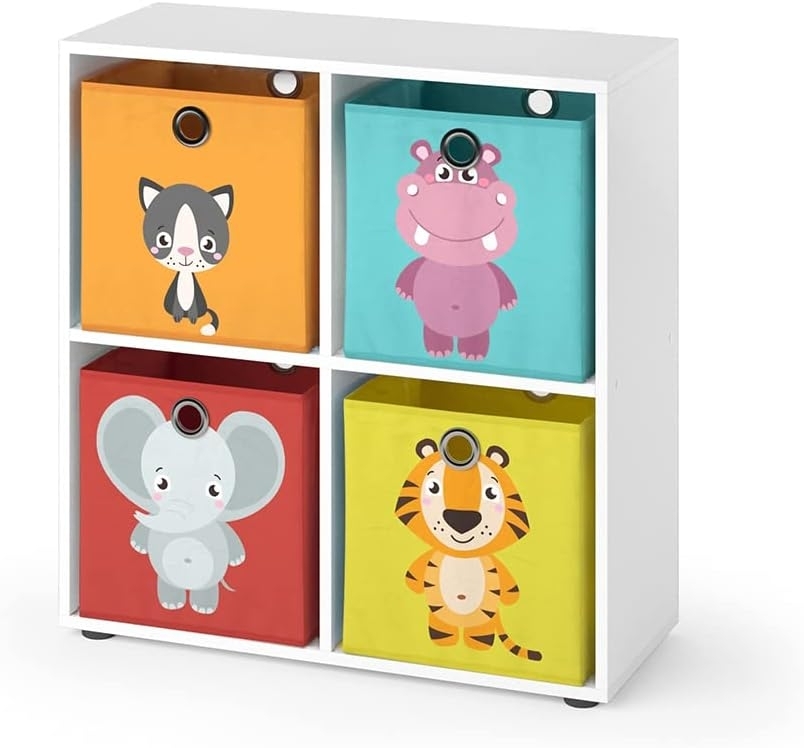 Das Vicco Kinderregal Tetra in Weiß ist die ideale Lösung für ein aufgeräumtes Kinderzimmer. Mit den Abmessungen 72 x 72,6 x 29 cm bietet es ausreichend Platz für Spielzeug, Bücher und Dekoration. Die vier Faltboxen in rot und gelb sorgen für eine stilvolle und praktische Aufbewahrung. Hergestellt aus pflegeleichter Spanplatte mit einer Melaminharzbeschichtung, vereint es Funktionalität und ansprechendes Design. **Highlights** - Vier Faltboxen in rot und gelb für eine farbenfrohe Aufbewahrung - Offene Regale für individuelle Gestaltung mit Kartons in 30 x 30 cm - Pflegeleichte Spanplatte mit Melaminharzbeschichtung - Kompakte Abmessungen von 72 x 72,6 x 29 cm - Teil der Tetra-Reihe für ein harmonisches Kinderzimmer **Produkteigenschaften** - Farbe: Weiß - Maße (BxHxT): 72 x 72,6 x 29 cm - Material: Spanplatte, 16 mm - Artikelgewicht: 15,49 kg - Artikelgewicht inkl. Verpackung: 16,5 kg **Lieferumfang** - Kinderregal - 4x Faltboxen - Montageanleitung - Montagematerial