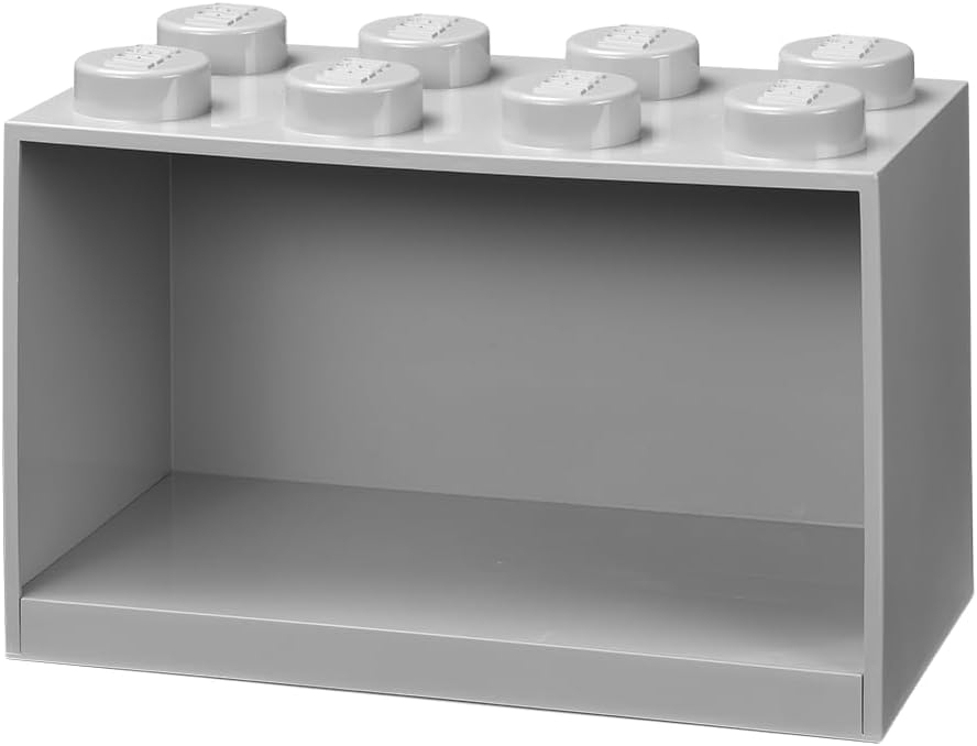 - Das LEGO Wandregal 8 Noppen in grau bietet Platz für bis zu 8 Fächer
