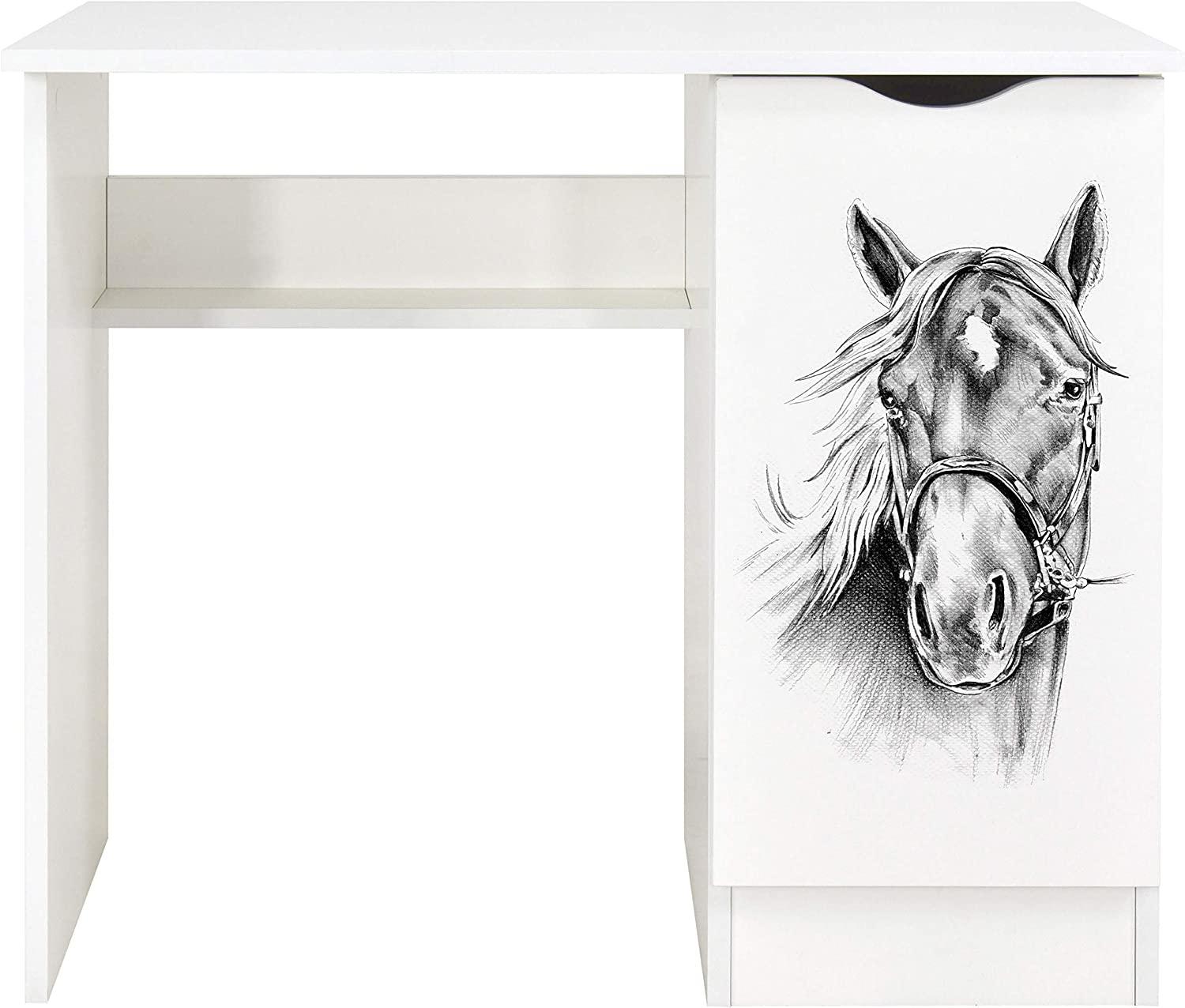 | Name | Weiß Kinderschreibtisch - ROMA - Möbel für Kinderzimmer, UV-Druck: Porträt eines Pferdes |