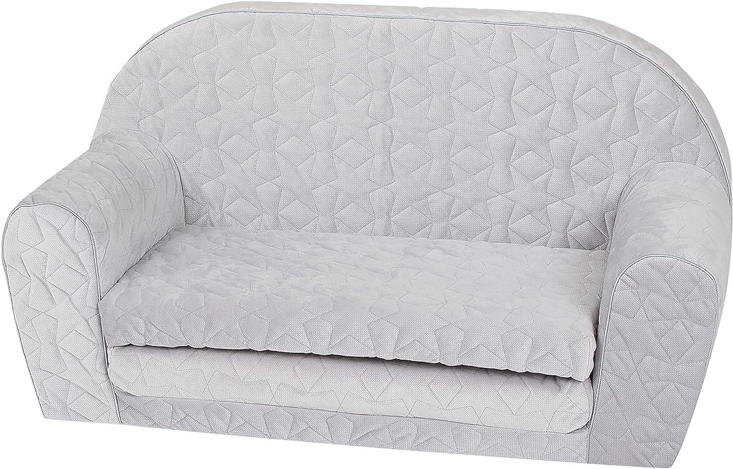 Das Kindersofa "Cosy geo grey" von knorrtoys vereint Komfort und Stil in einem kindgerechten Design. Mit einer Sitz- und Liegefläche sowie Armlehnen aus weichem Schaumstoff bietet es Sicherheit und Geborgenheit. Die graphische Steppung und die ansprechende Farbe machen es zum Blickfang im Kinderzimmer. Dank des leichten Materials können Kinder das Sofa mühelos bewegen und als Beistellcouch oder Liegefläche nutzen. **Highlights** - Bequemes und gemütliches Kindersofa - Sitz- und Liegefläche sowie Armlehnen aus weichem Schaumstoff - Tolle Farbe und graphische Steppung als Hingucker im Kinderzimmer - Sicherheit und Geborgenheit für Ihr Kind - Leicht und dennoch stabil, einfach im Zimmer zu bewegen **Produkteigenschaften** - Abmessungen: ca. 77 x 34 x 42 cm - Sitzfläche: ca. 53 x 26 cm - Abmessungen, wenn ausgeklappt: ca. 77 x 81 x 42 cm - Belastbarkeit: bis 30 kg - Abnehmbarer Bezug, bei 30°C Handwäsche geeignet - Material: Bezug aus 100% Baumwolle