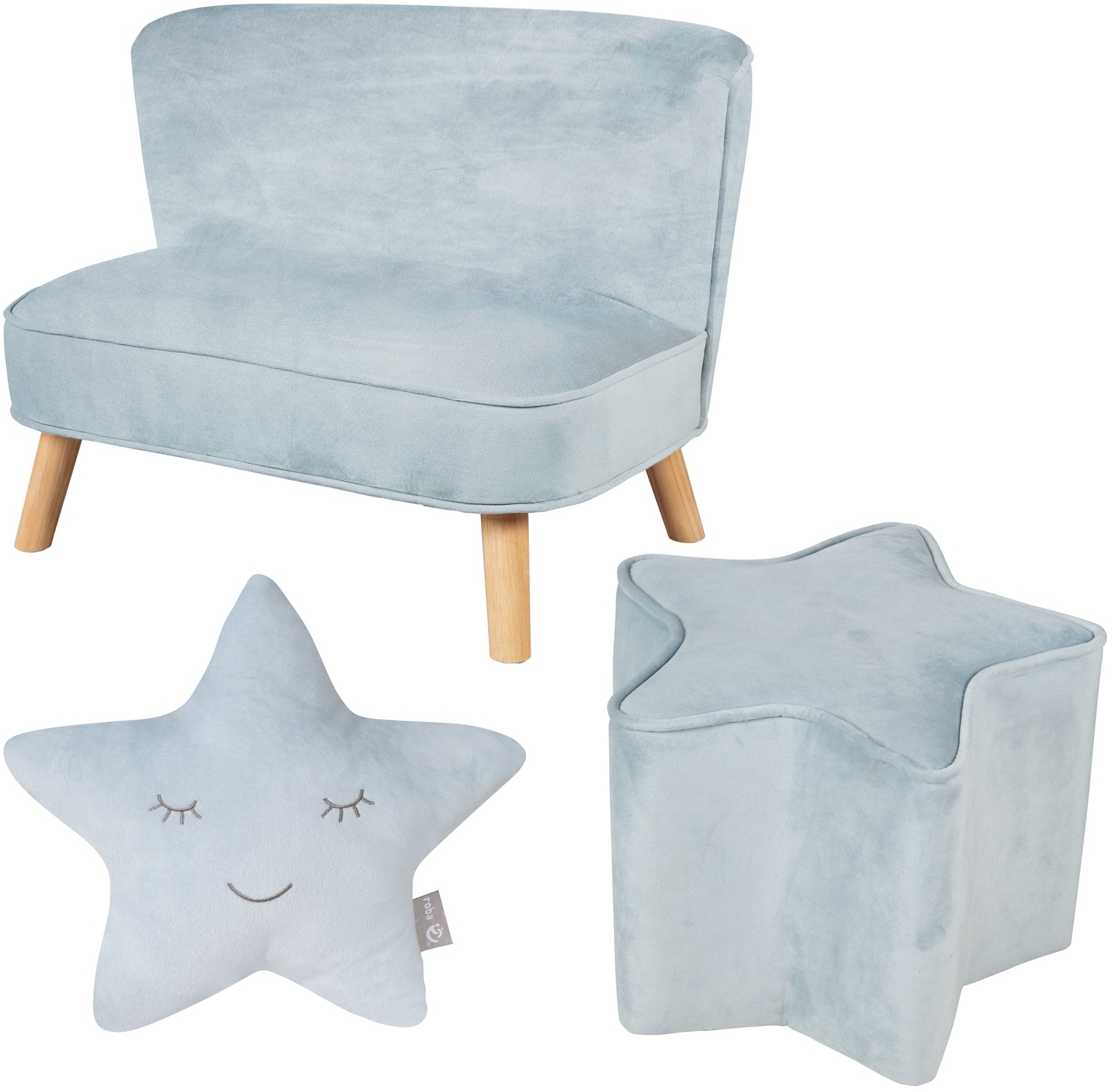 roba Bundle 'Lil Sofa' - Kindersofa - Kinderhocker in Sternform - Dekokissen - Hellblau / Sky