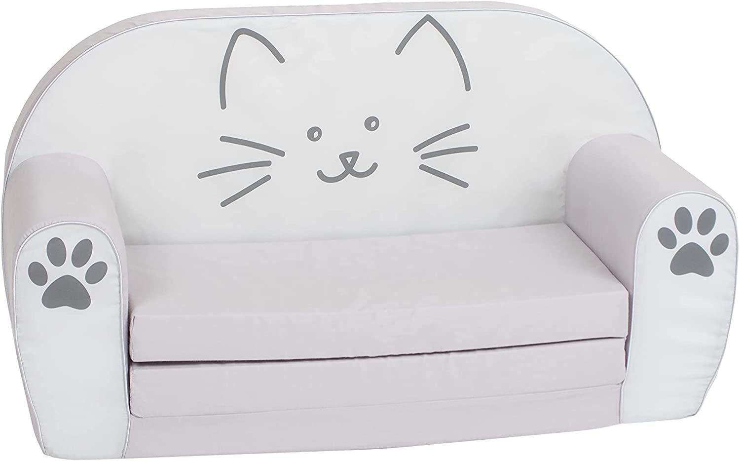 Dieses ausklappbare Kindersofa "Katze Lilli" von knorrtoys begeistert durch seine Bequemlichkeit und den bunten Aufdruck. Die Sitz- und Liegefläche sowie die Armlehnen sind aus weichem Schaumstoff und mit Baumwolle überzogen. Mit einem Gewicht von nur 30 kg ist es leicht zu bewegen und eignet sich perfekt als Beistellcouch oder Liegefläche für entspannte Stunden im Kinderzimmer. **Highlights** - Bequemes und ausklappbares Kindersofa - Sitz- und Liegefläche sowie Armlehnen aus weichem Schaumstoff und Baumwolle - Toller Hingucker im Kinderzimmer - Leicht und dennoch stabil - Kann als Beistellcouch oder Liegefläche genutzt werden **Produkteigenschaften** - Aufstellmaße/Abmessungen: ca. 77 x 34 x 42 cm - Sitzfläche: ca. 53 x 26 cm - Abmessungen, wenn ausgeklappt: ca. 77 x 81 x 42 cm - Belastbar bis 30 kg - Bezug abnehmbar und bei 30 °C Handwäsche geeignet