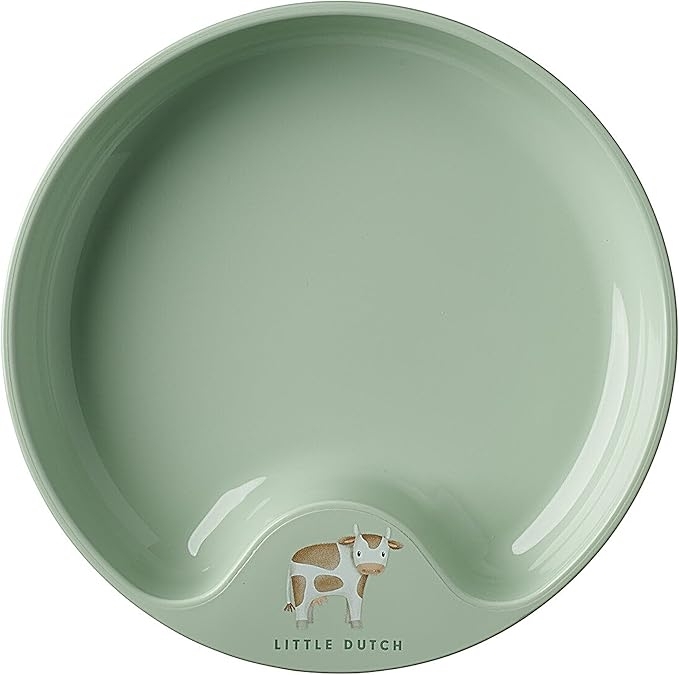 Der Little Dutch Little Farm Übungsteller in Grün unterstützt Ihr Kind beim selbständigen Essen lernen. Mit seiner glatten Oberfläche und der rutschfesten Unterseite erleichtert er die ersten Essversuche. Das fröhliche Design passt perfekt zum Little Dutch Bauernhof Thema. Der Teller ist mikrowellen- und spülmaschinengeeignet, was die Reinigung und das Erwärmen von Speisen zum Kinderspiel macht. **Highlights** - Rutschfester Boden für sicheren Halt - Fördert unabhängiges Essen - Mikrowellengeeignet für einfaches Erwärmen - BPA-frei für sichere Nutzung - Spülmaschinenfest für einfache Reinigung **Produkteigenschaften** - Hergestellt aus hochwertigem Material - Stilvolles Design im Little Dutch Bauernhof Thema - Praktische Einbuchtung im Rand für einfaches Essen - Robust und langlebig für langanhaltende Freude